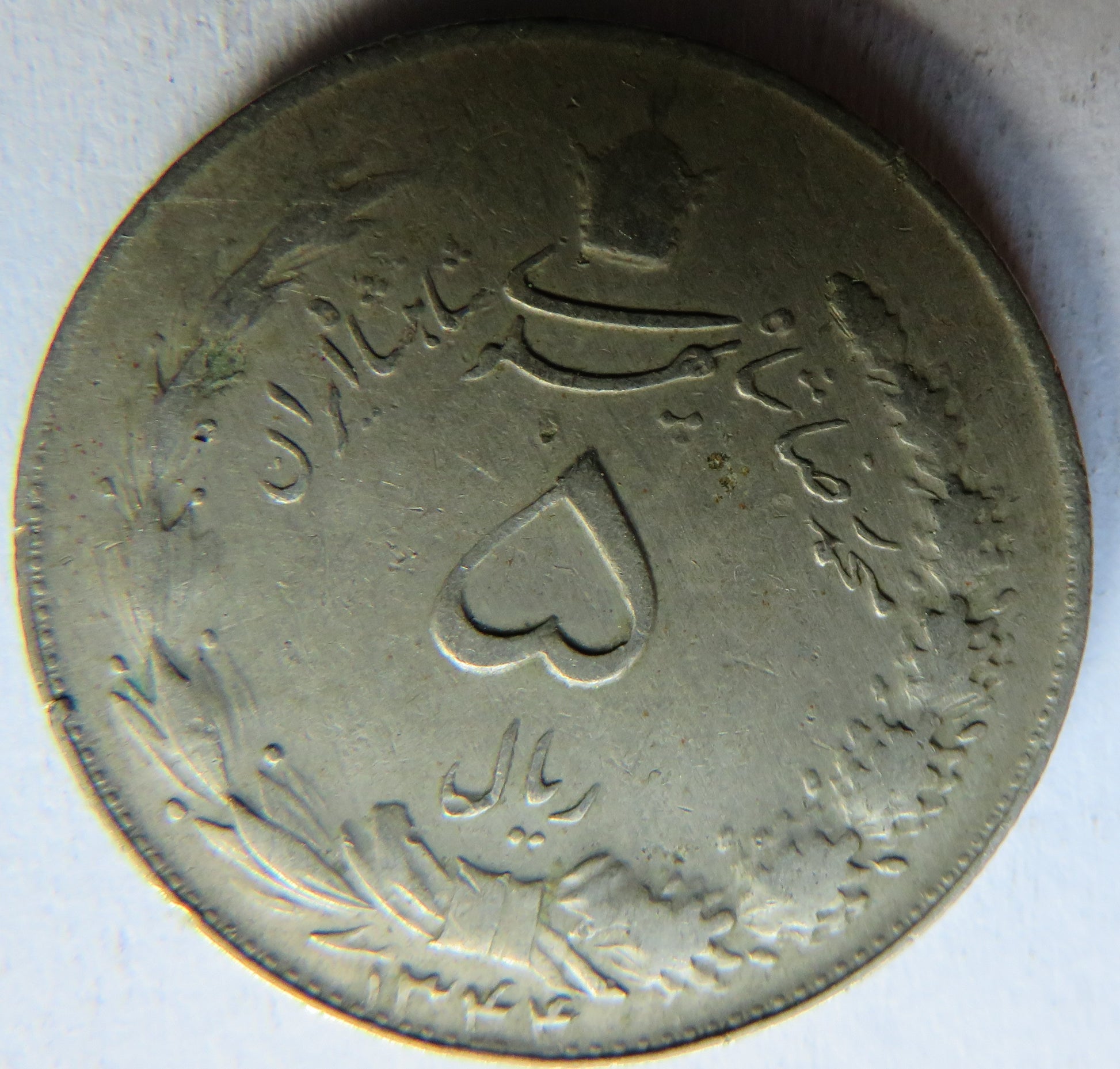 For Sale - 1344 (1965) Iran 5 Rials Coin