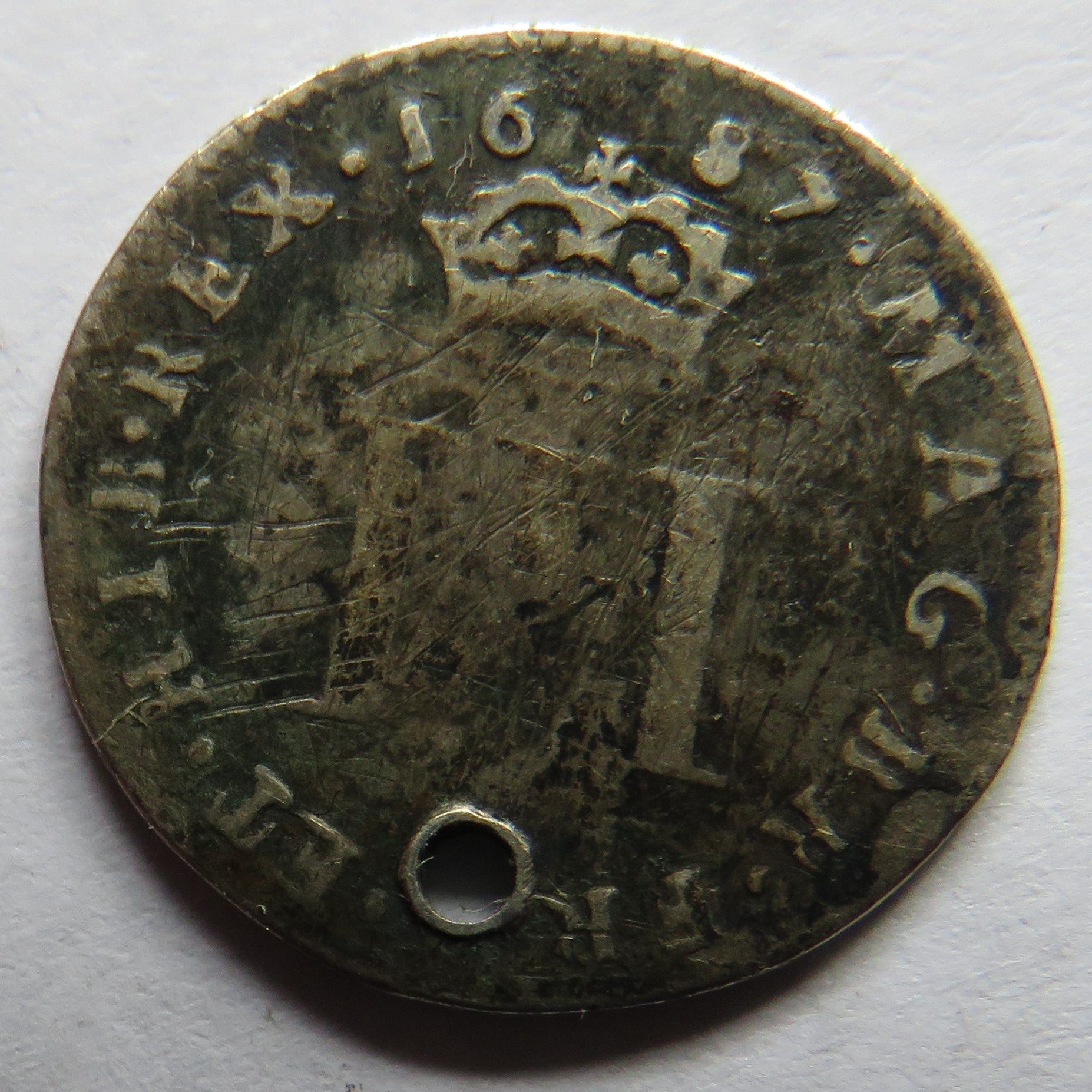 1687 King James II Silver Maundy Threepence Coin (Holed)