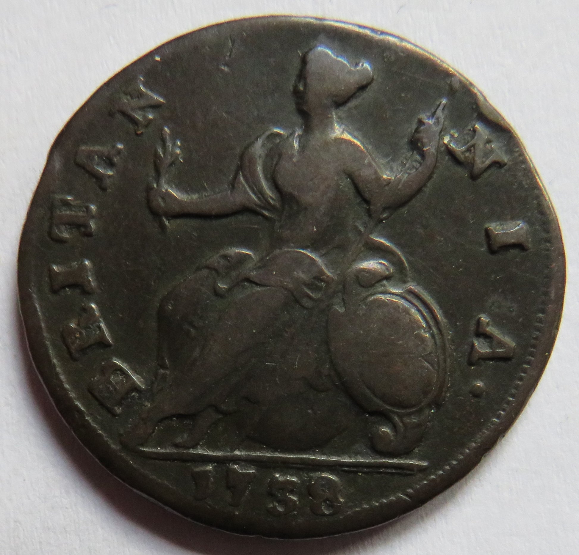 For Sale - 1738 King George II Halfpenny Coin - Great Britain