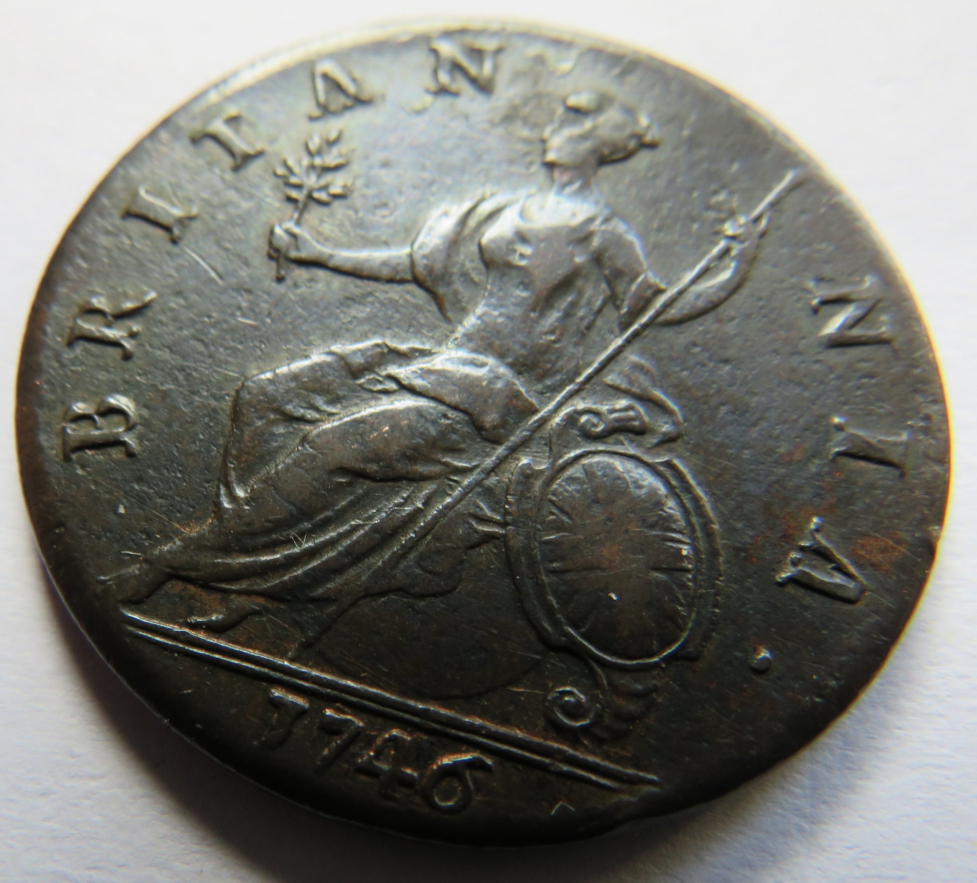 For Sale - 1746 King George II Halfpenny Coin - Great Britain