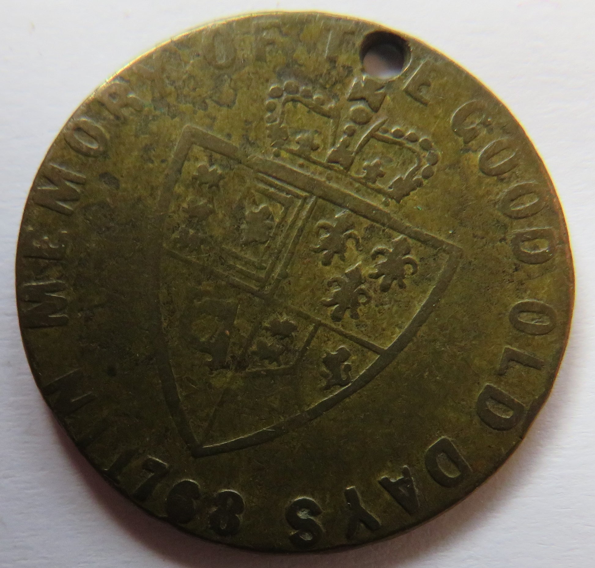1768 George III Brass Gaming Token "In Memory of The Good Old Days"