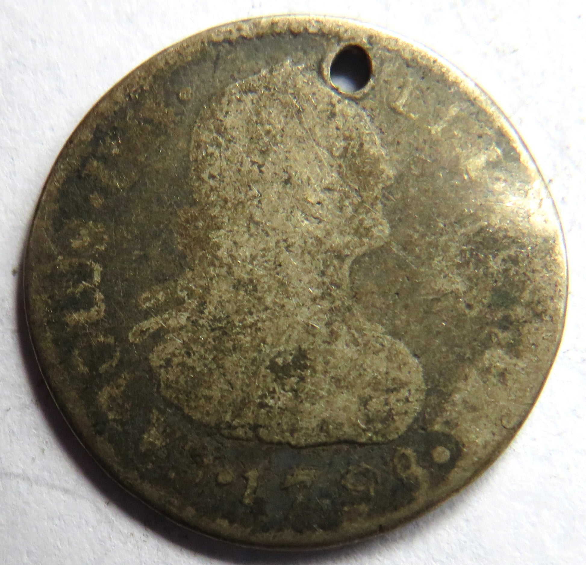 1798 Spanish Colonial Silver 1/2 Real Coin