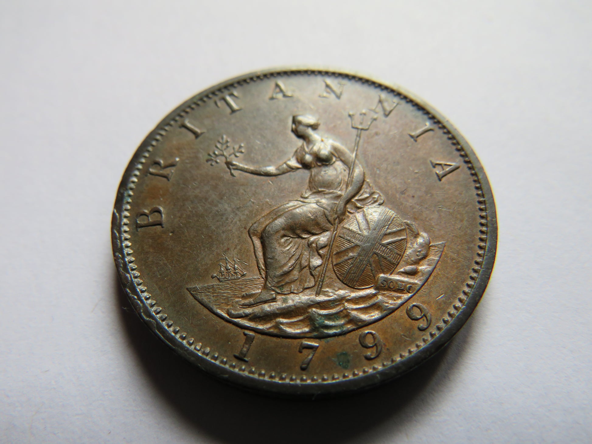 For Sale - 1799 King George III Halfpenny Coin In Higher Grade - Great Britain