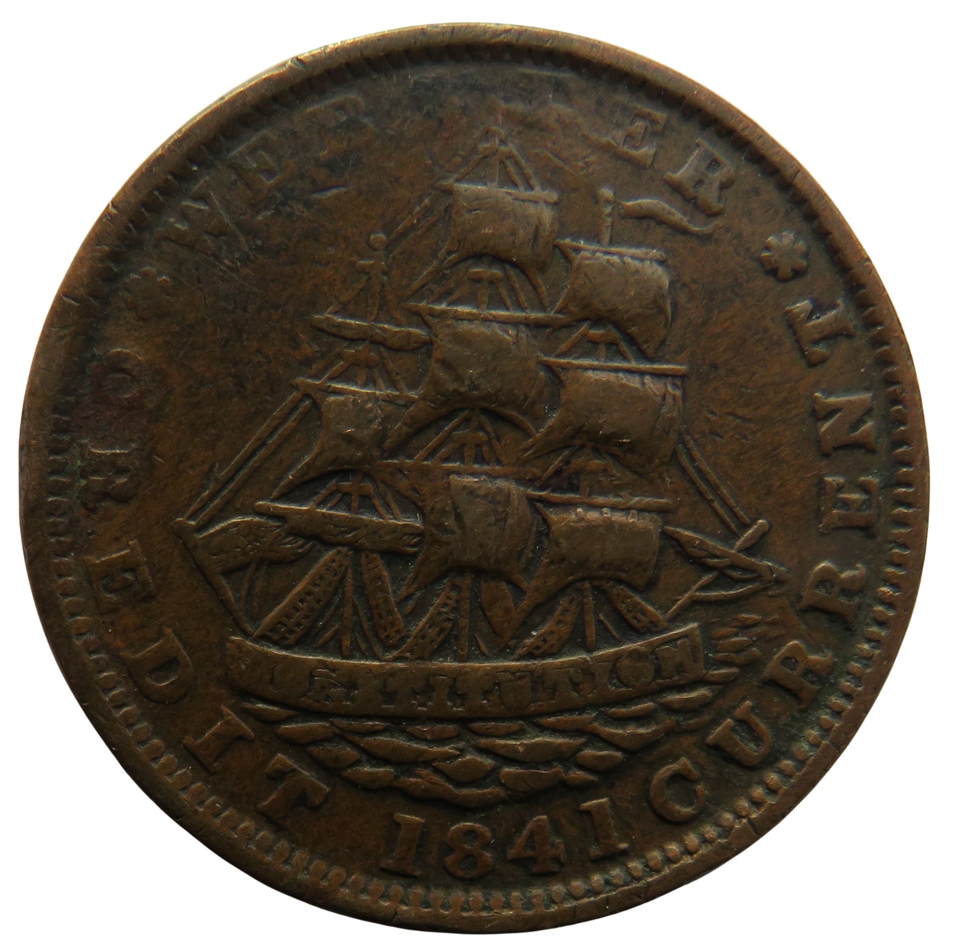 1841 US Hard Times Token Webster Credit Currency Millions For Defence