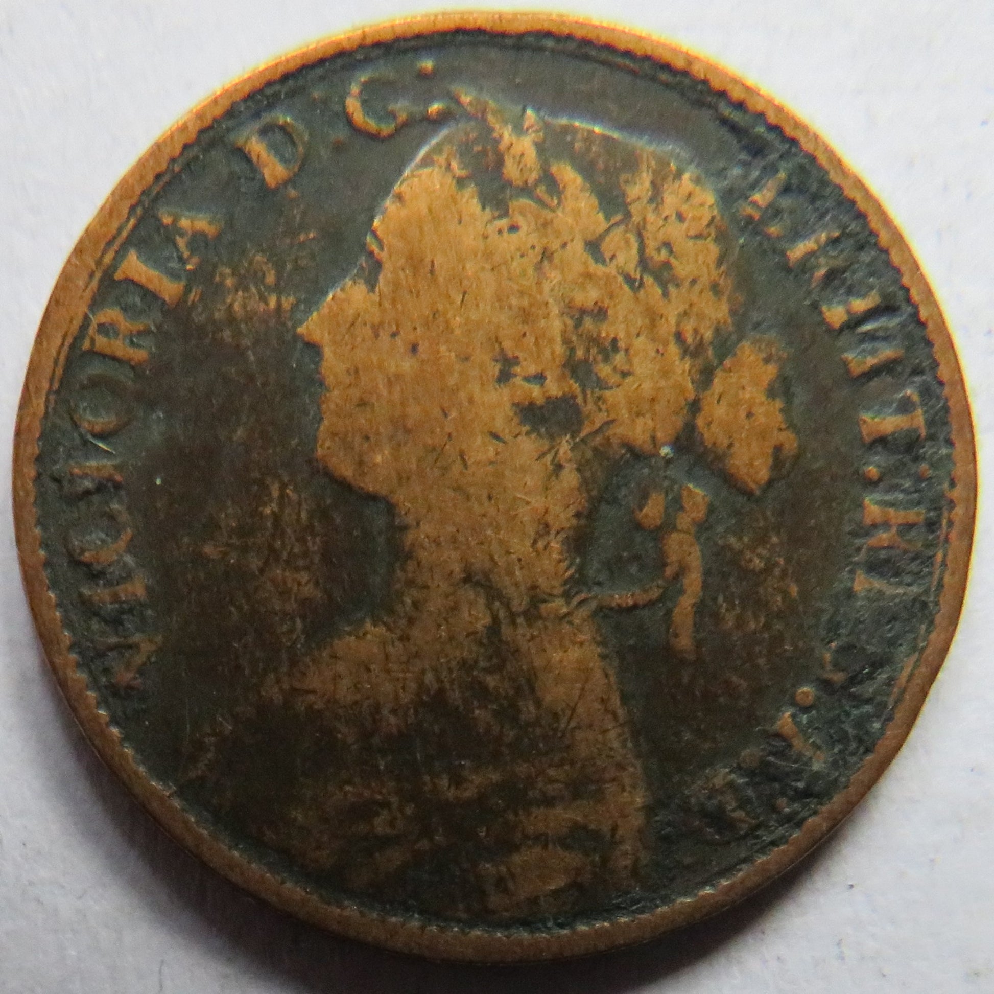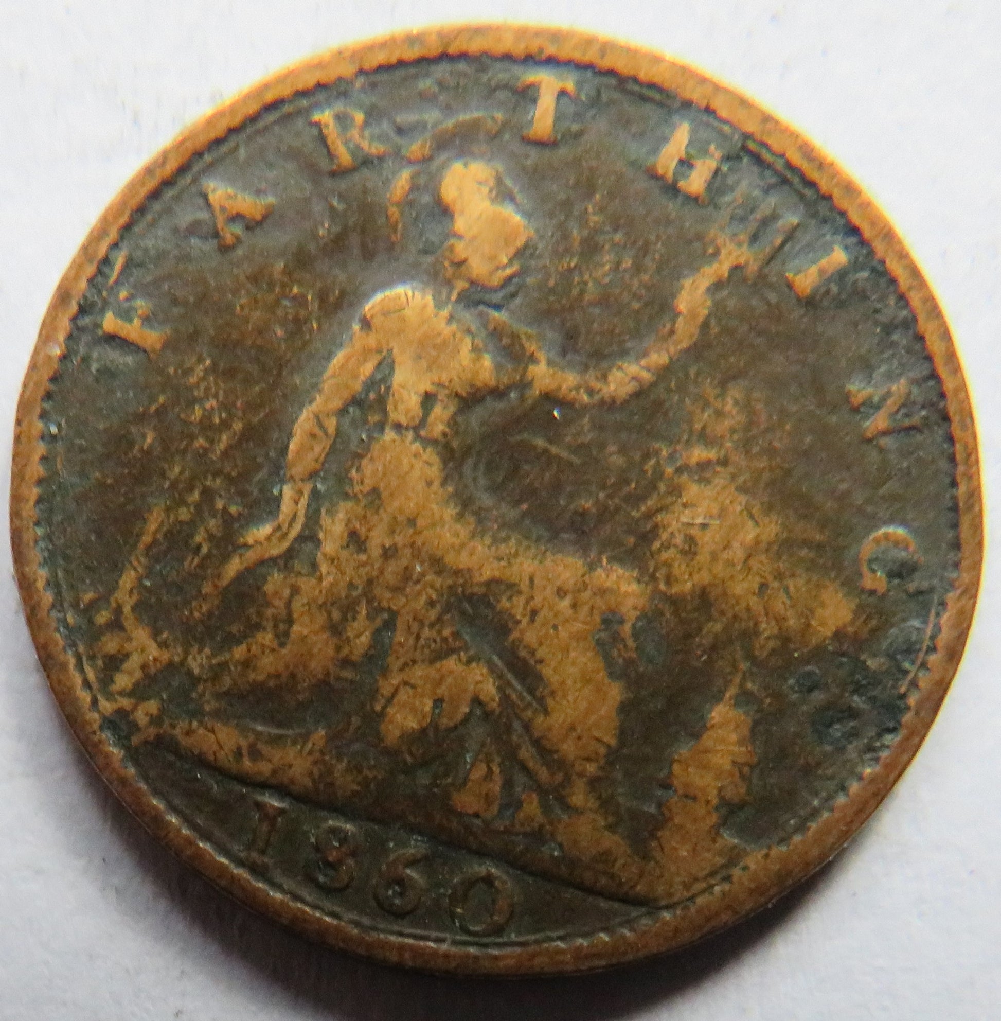 For Sale - 1860 Queen Victoria Bun Head Farthing Coin - Great Britain