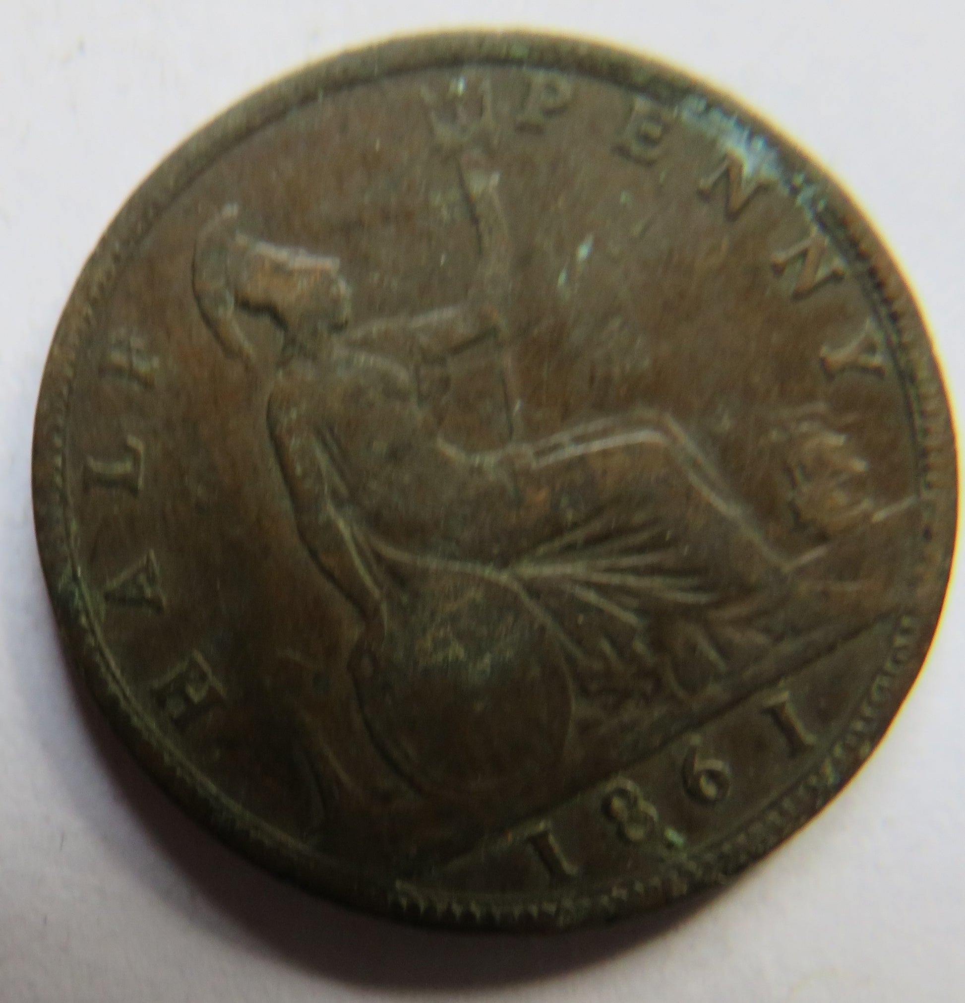 For Sale - 1861 Queen Victoria Bun head Halfpenny Coin - Great Britain