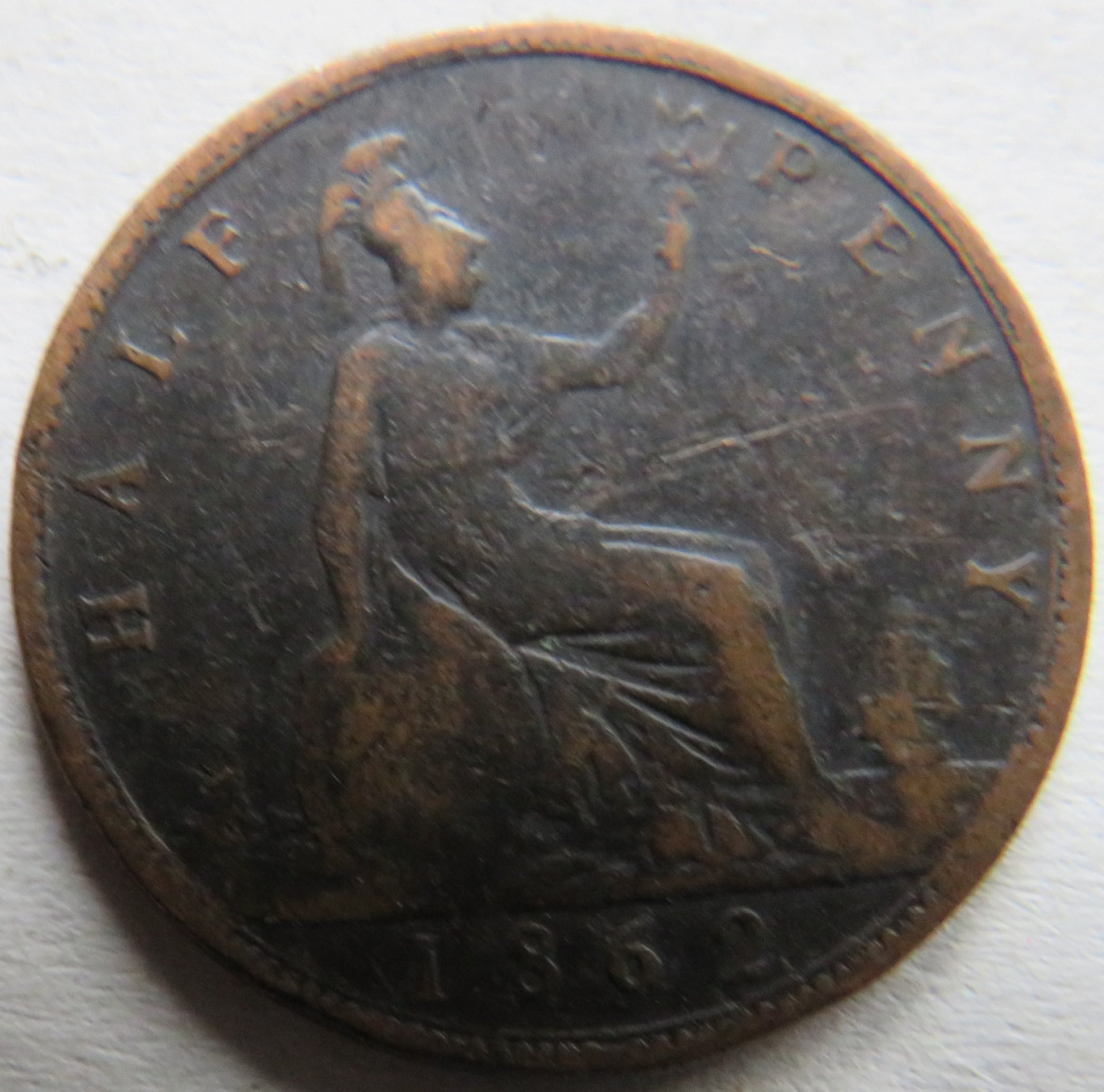 For Sale - 1862 Queen Victoria Bun Head Halfpenny Coin - Great Britain