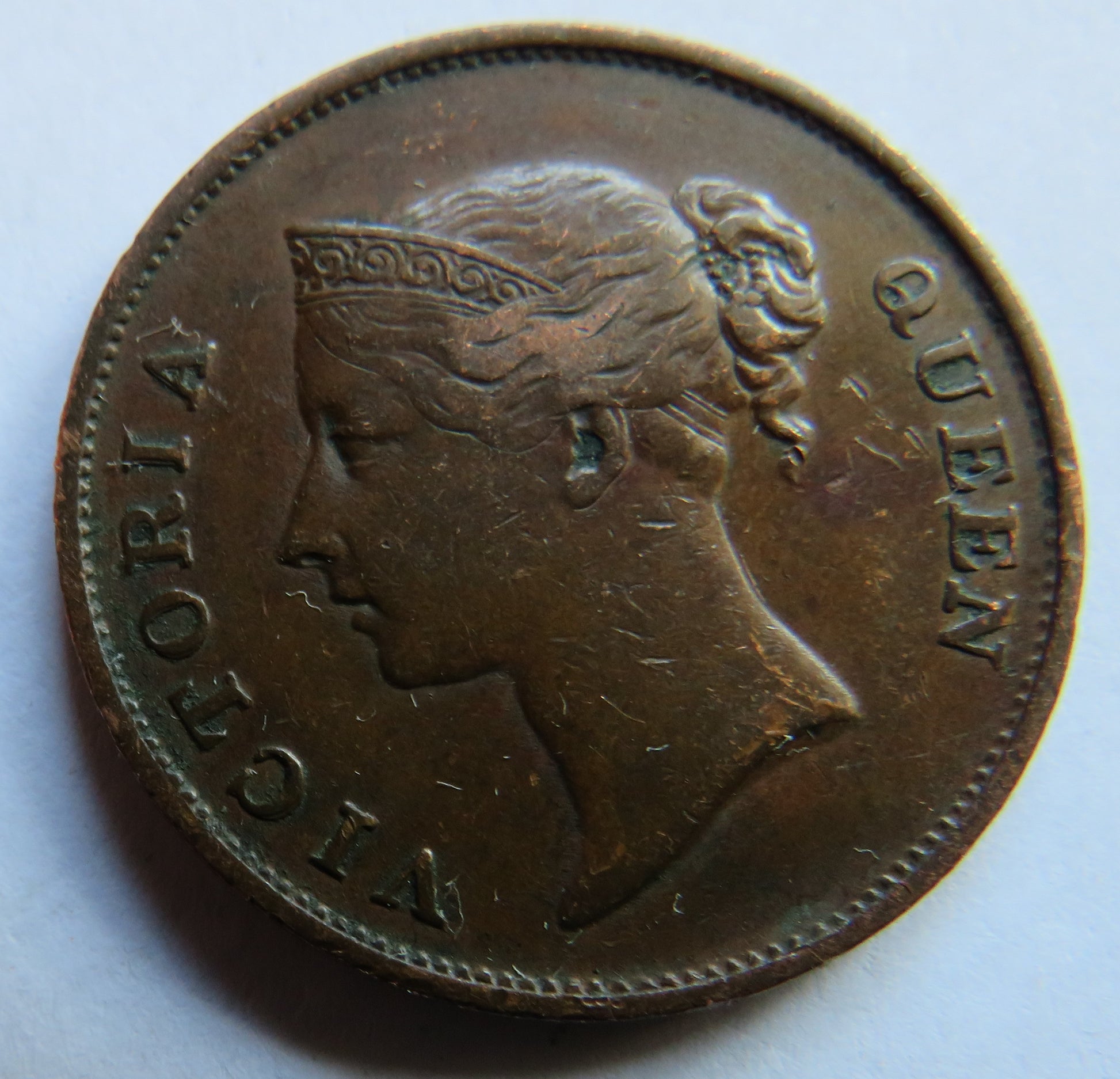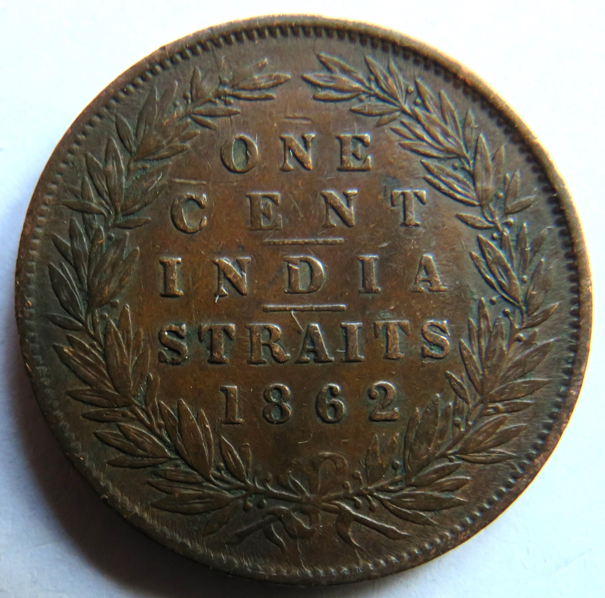 1862 Queen Victoria India Straits Settlements One Cent Coin