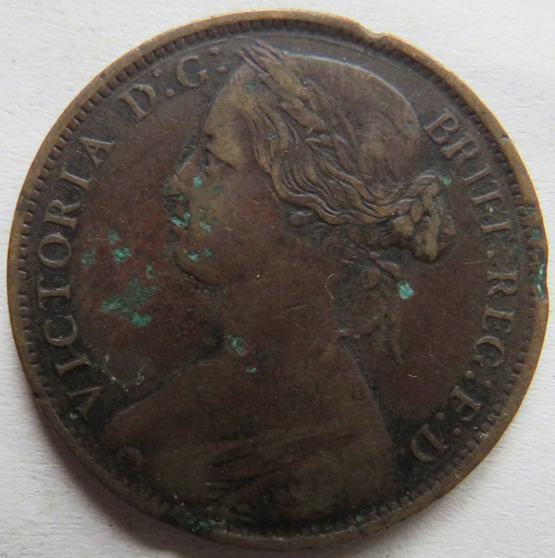 For Sale - 1865 Queen Victoria Bun Head One Penny Coin - Great Britain