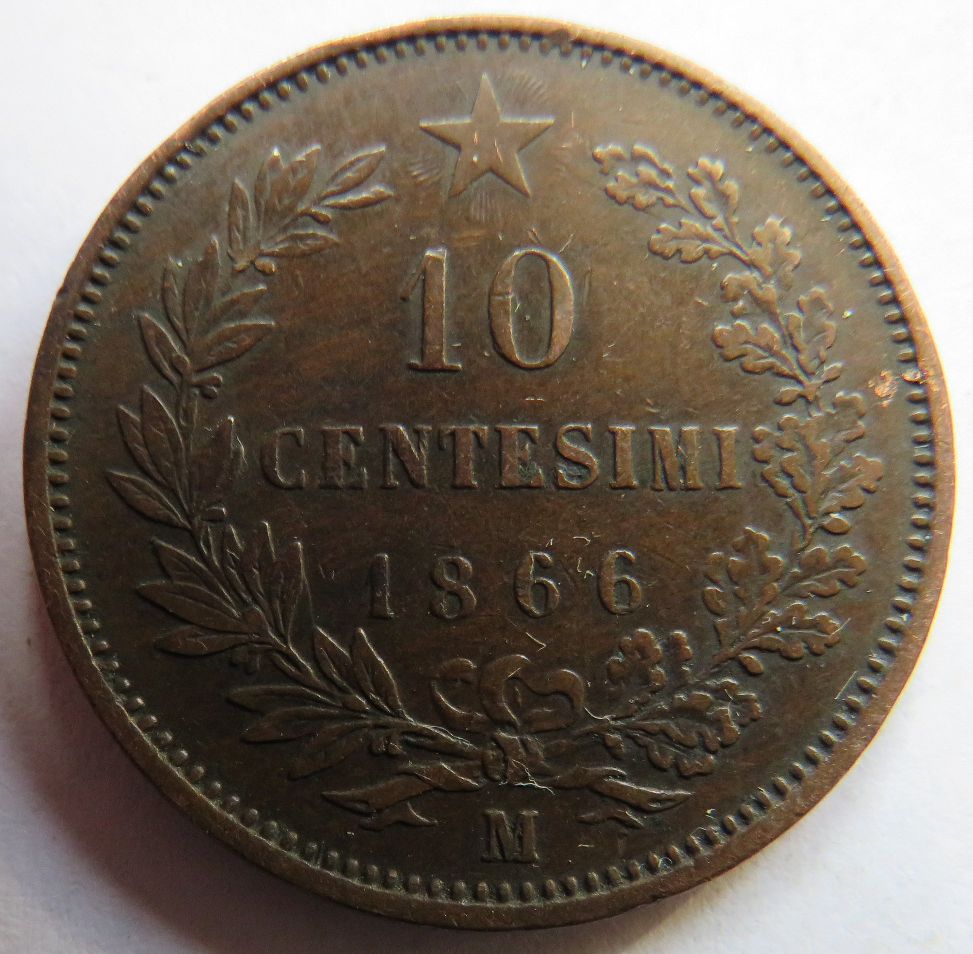 For Sale - 1866-M Italy 10 Centesimi Coin