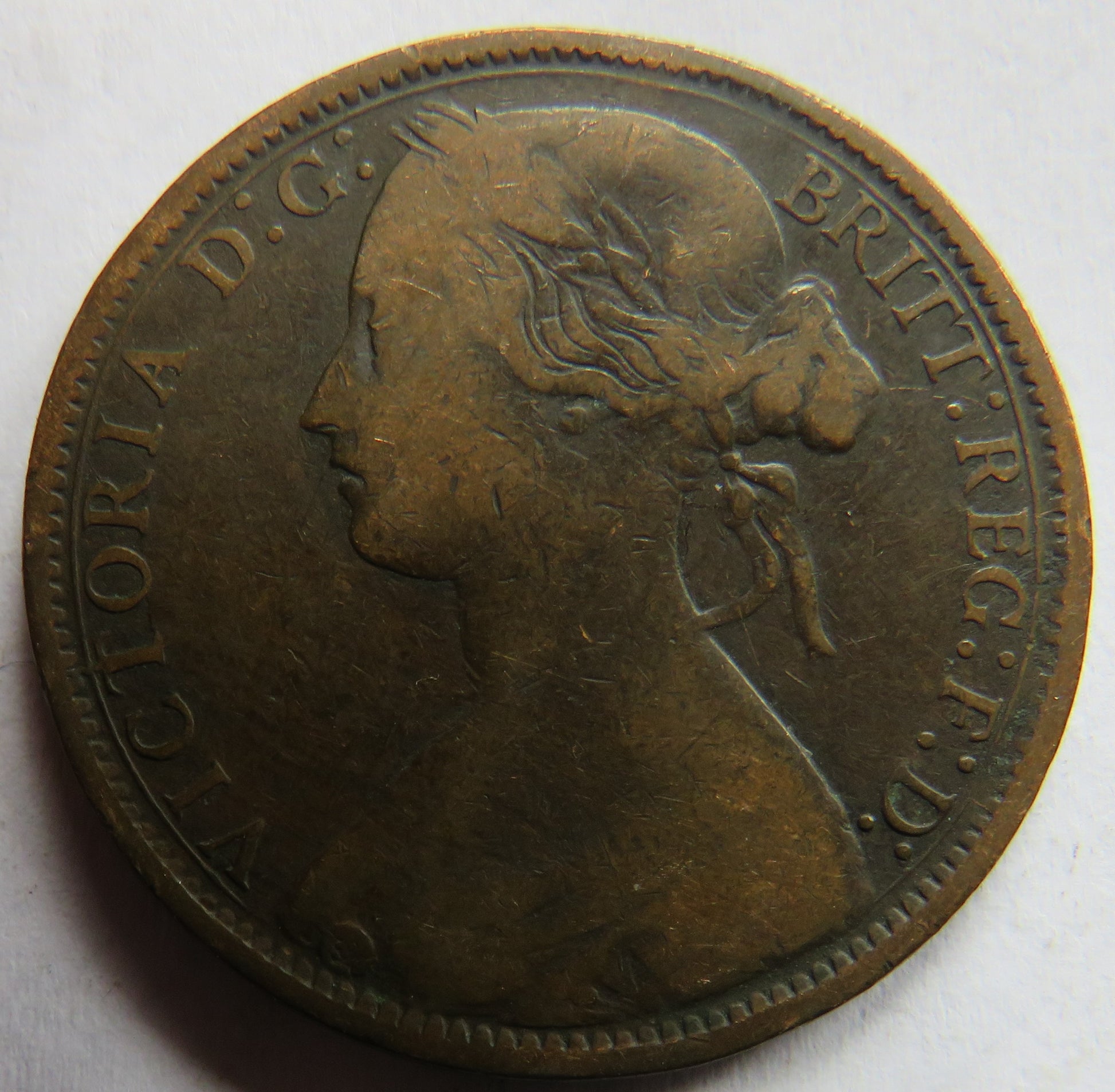 For Sale - 1870 Queen Victoria Bun Head One Penny Coin - Great Britain