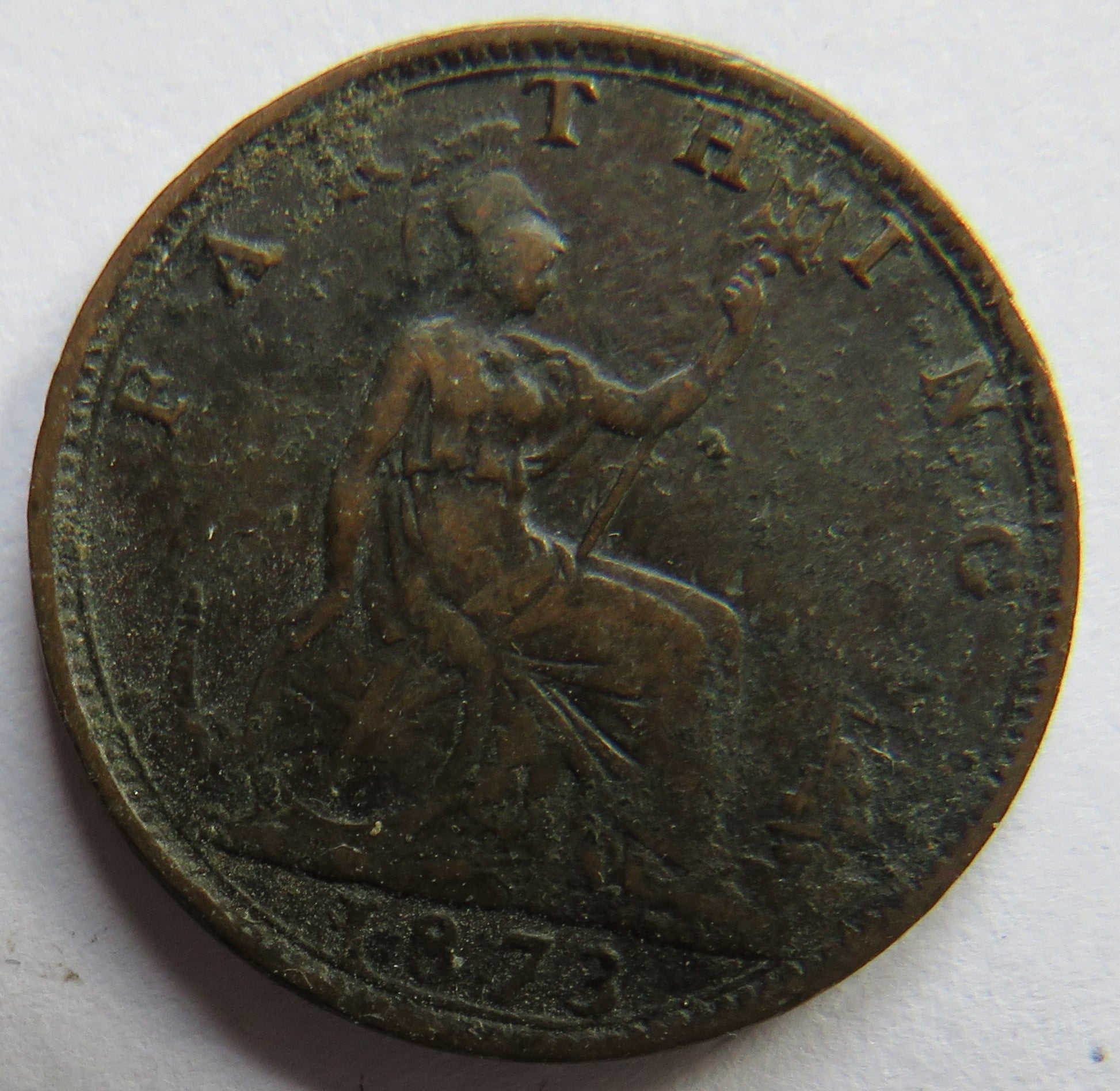 For Sale - 1873 Queen Victoria Bun Head Farthing Coin - Great Britain