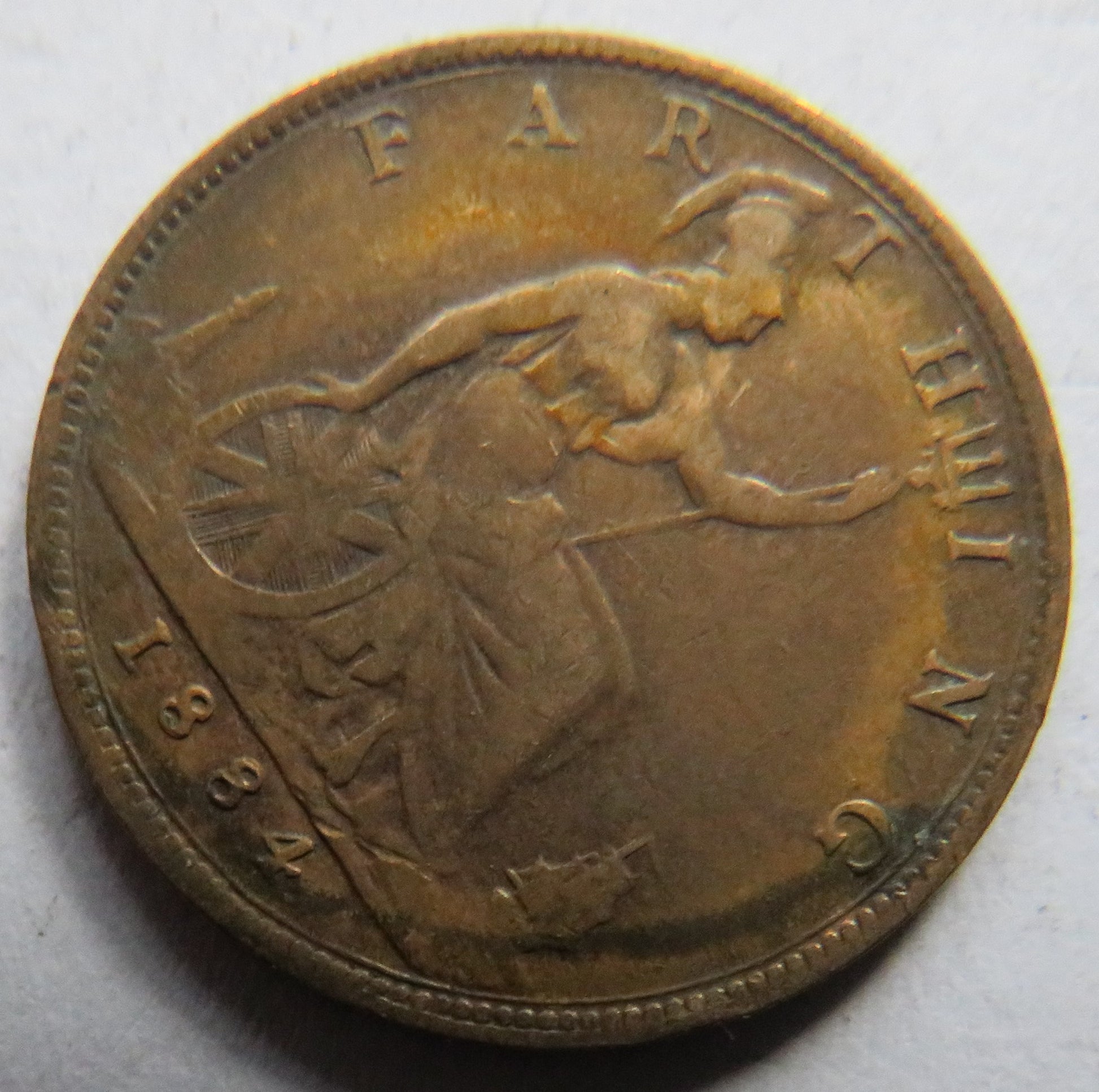 For Sale - 1884 Queen Victoria Bun Head Farthing Coin - Great Britain