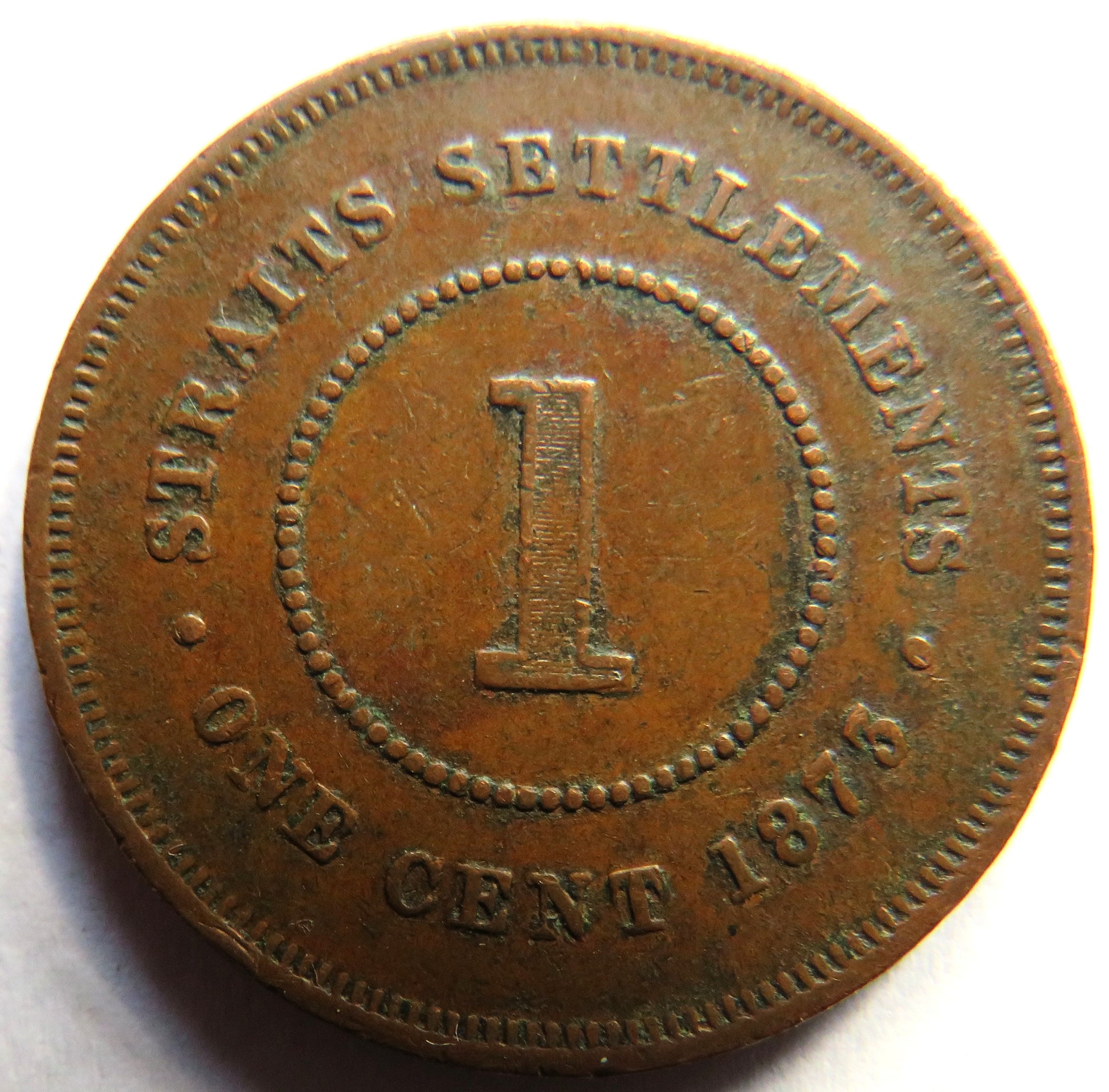 1873 Queen Victoria Straits Settlements One Cent Coin