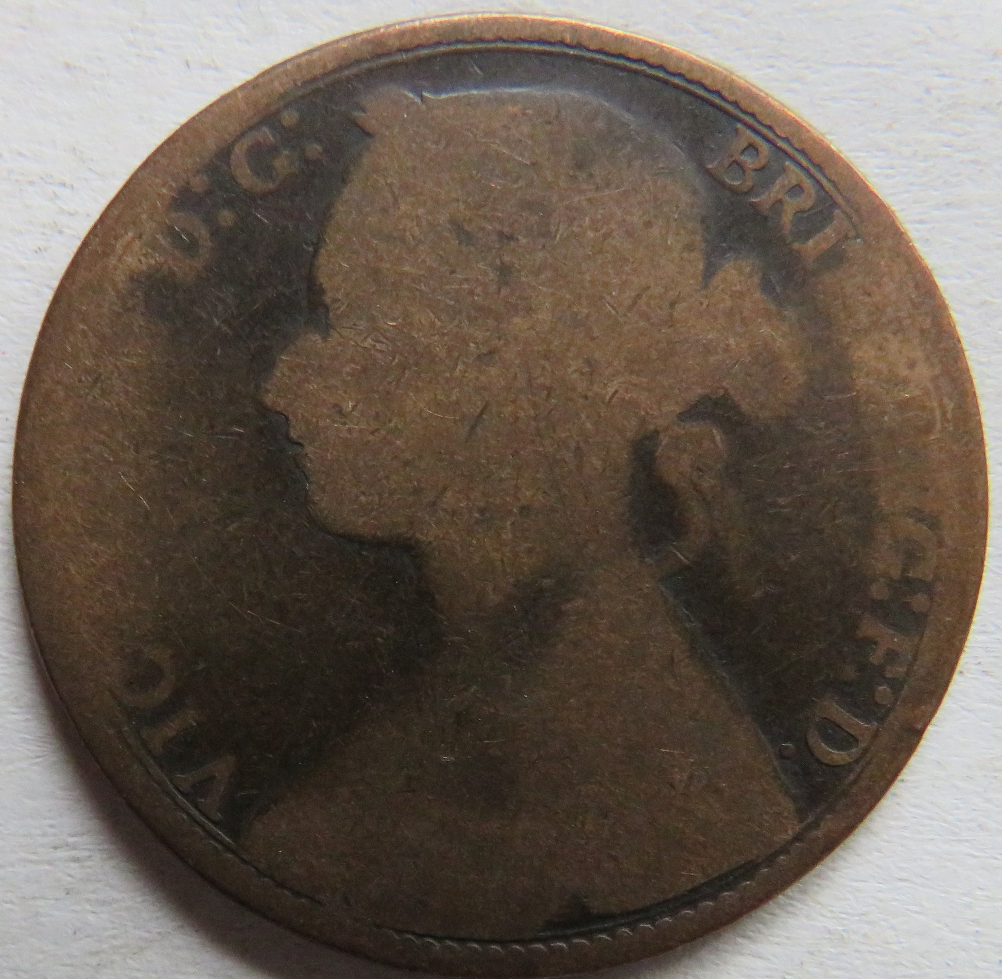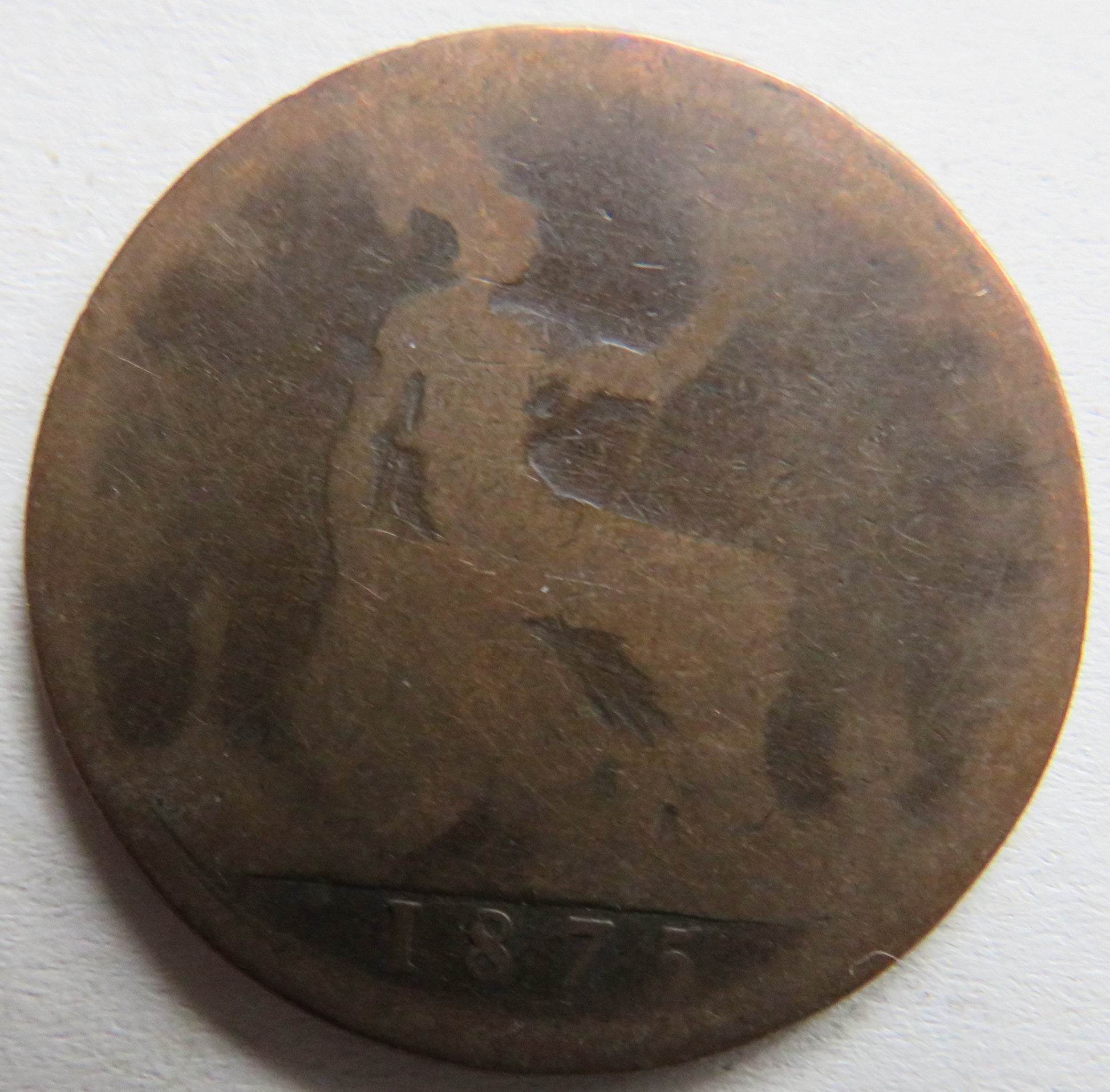 For Sale - 1875 Queen Victoria Bun Head One Penny Coin - Great Britain