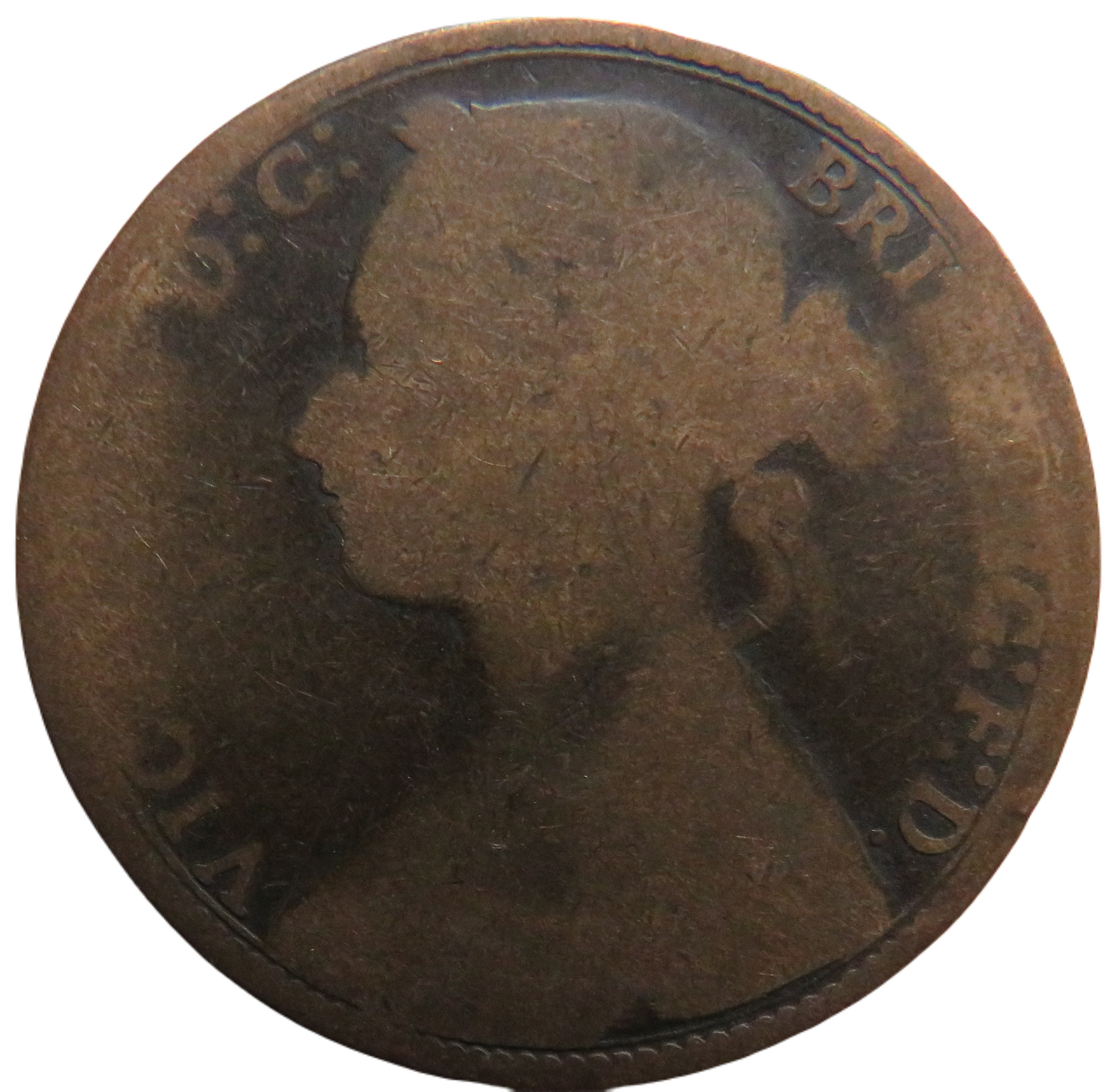 1875 Queen Victoria Bun Head One Penny Coin - Great Britain