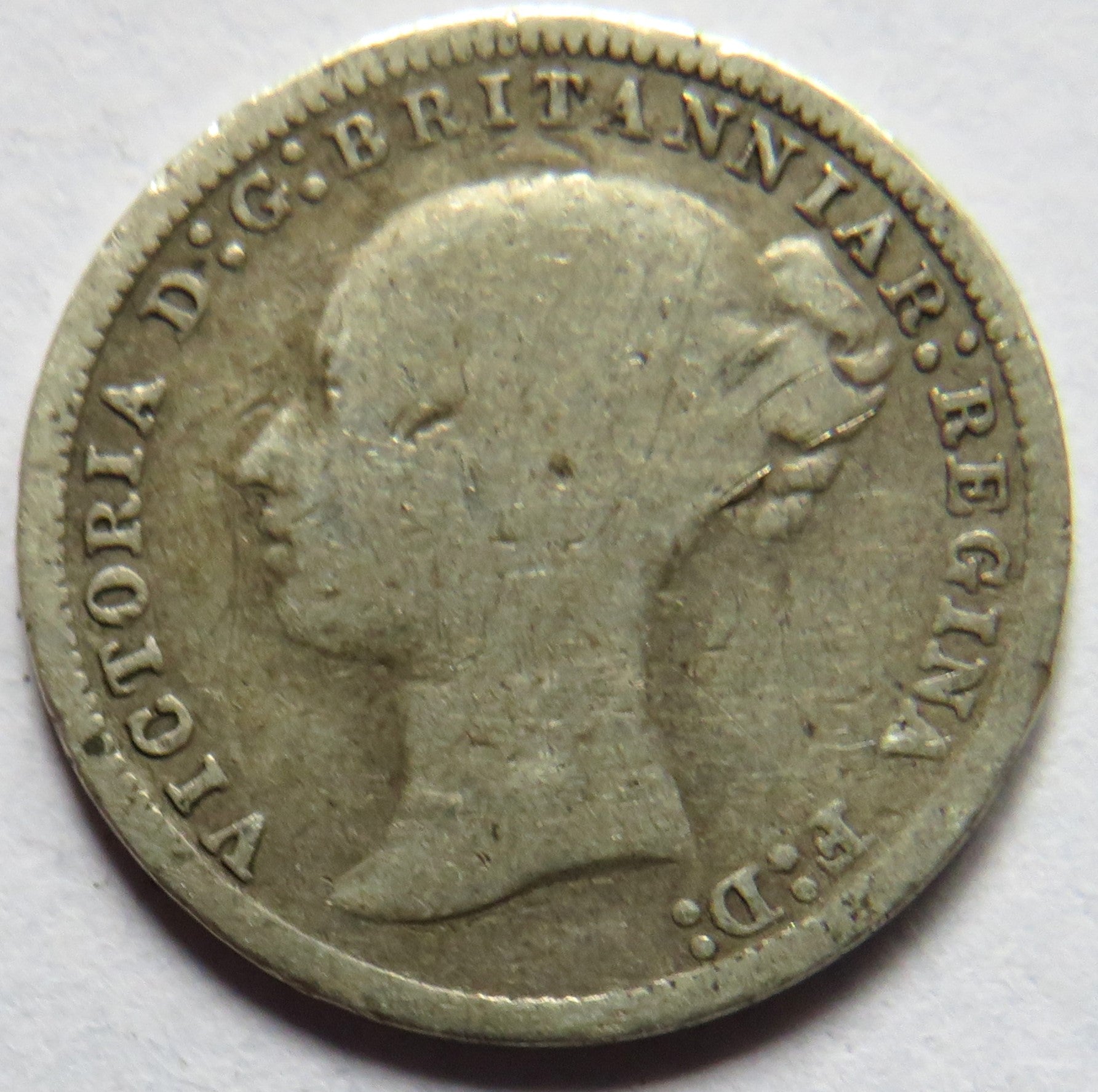 For Sale - 1875 Queen Victoria Young Head Silver Threepence Coin - Great Britain