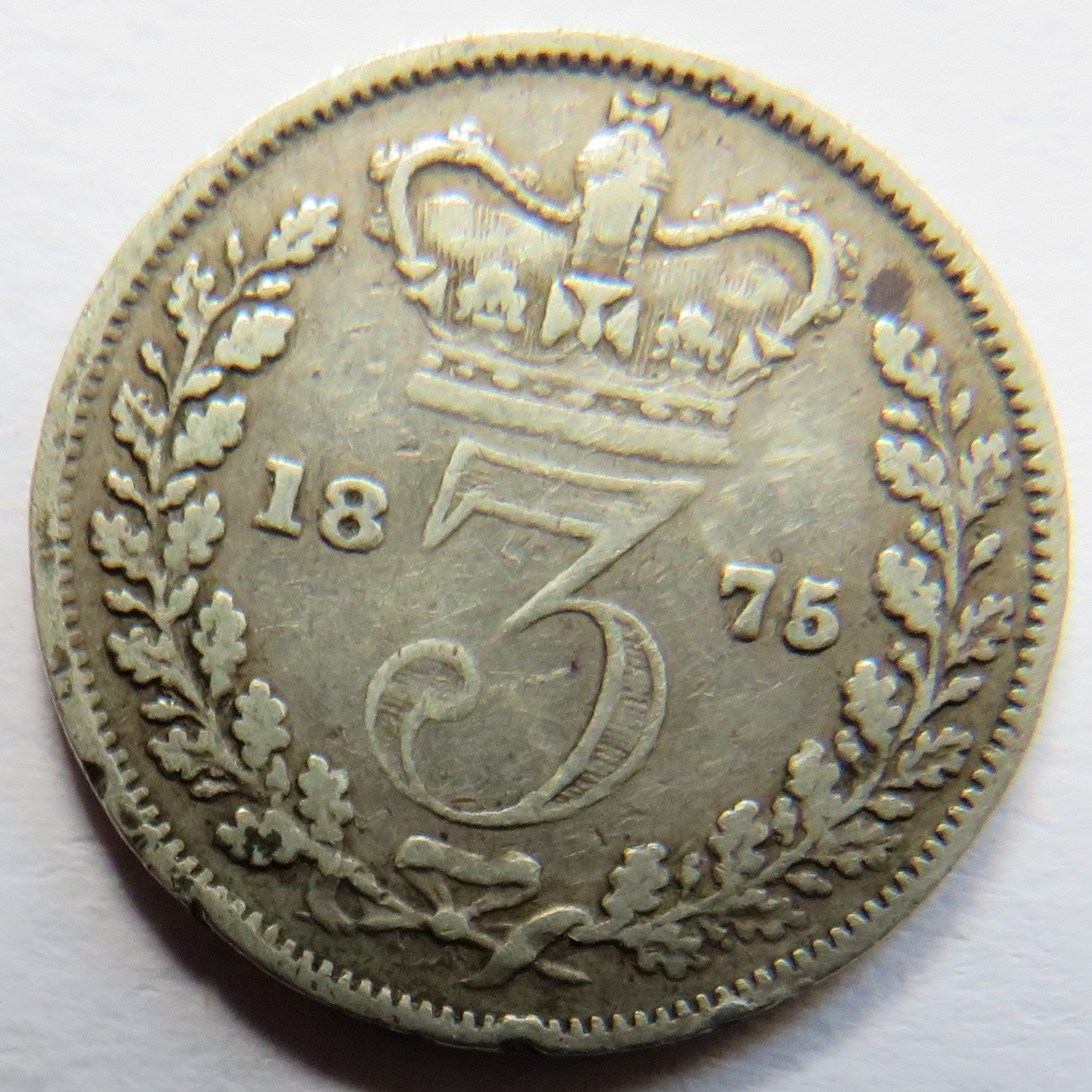 For Sale - 1875 Queen Victoria Young Head Silver Threepence Coin - Great Britain
