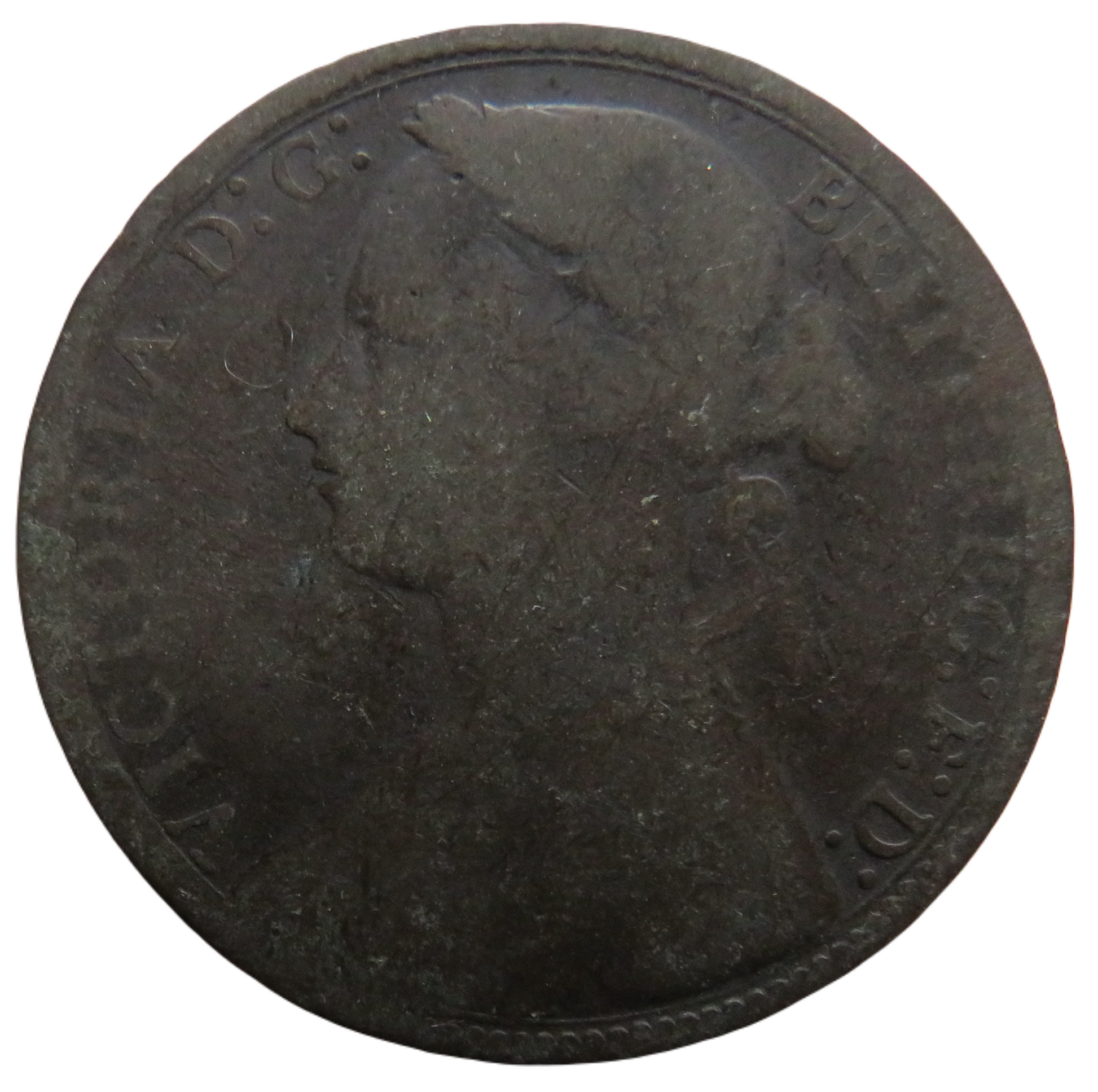 For Sale - 1876-H Queen Victoria Bun Head One Penny Coin - Great Britain