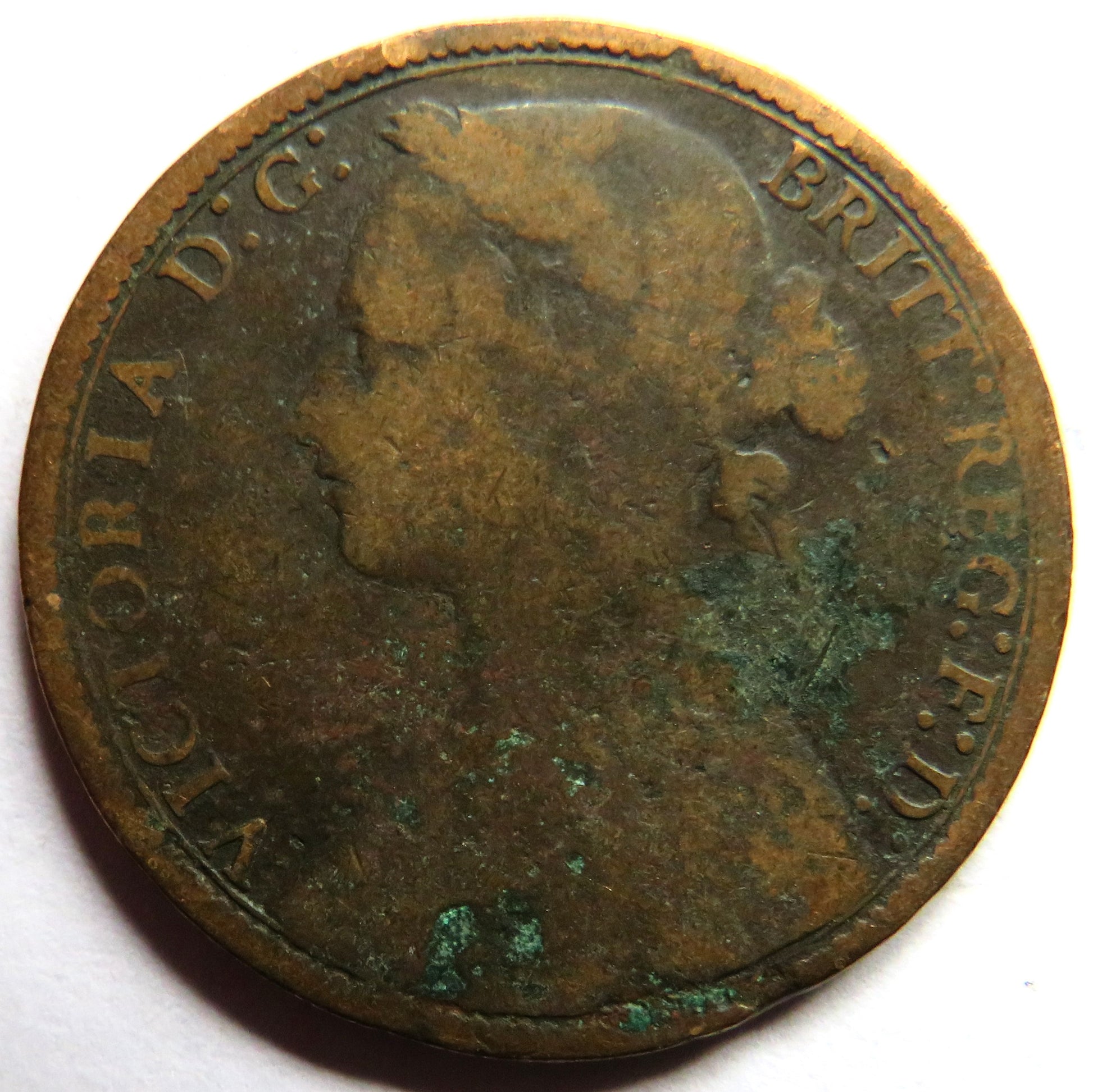 For Sale - 1877 Queen Victoria Bun Head One Penny Coin - Great Britain