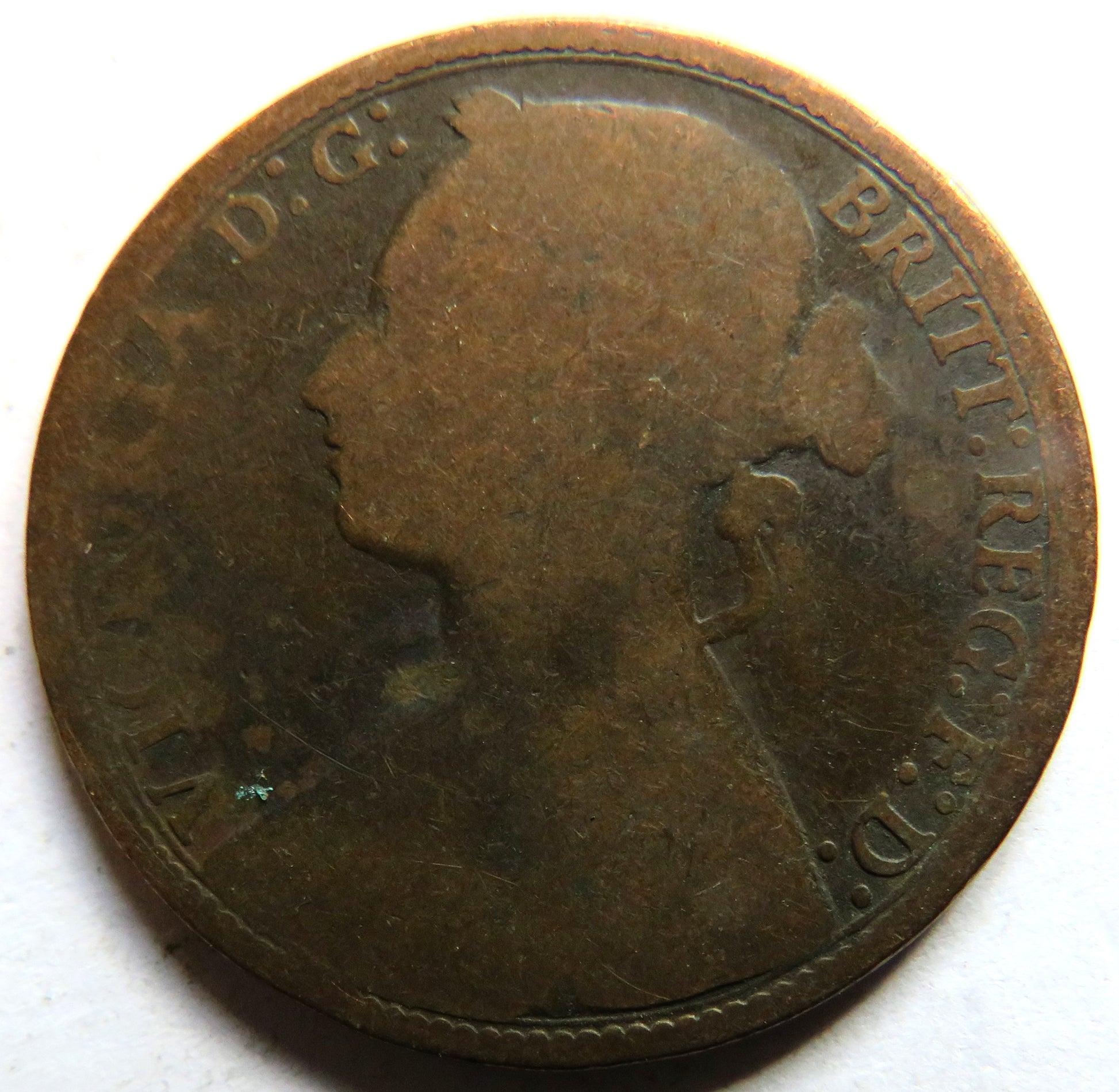 For Sale - 1877 Queen Victoria Bun Head One Penny Coin - Great Britain