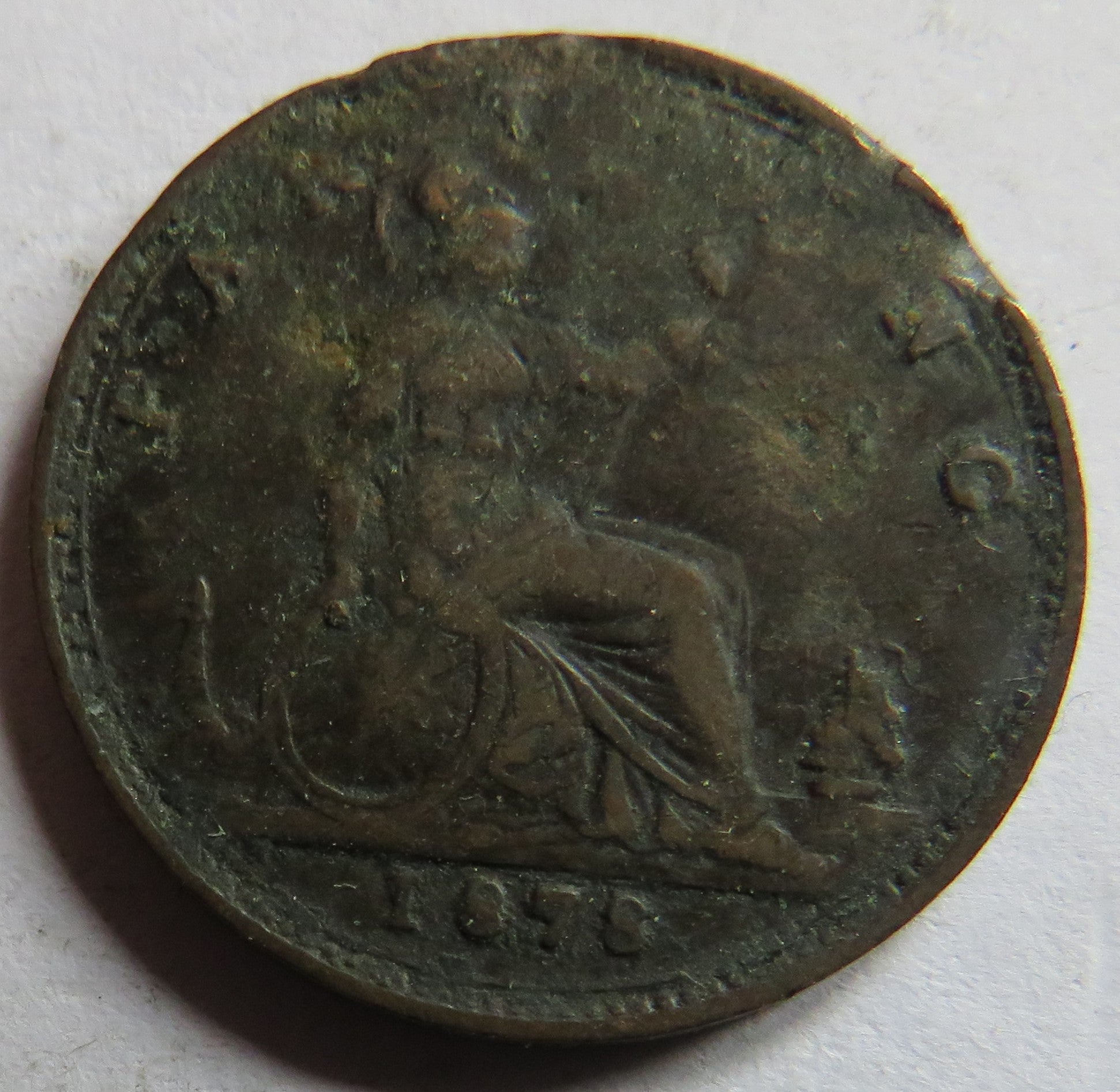 For Sale - 1878 Queen Victoria Bun Head Farthing Coin - Great Britain