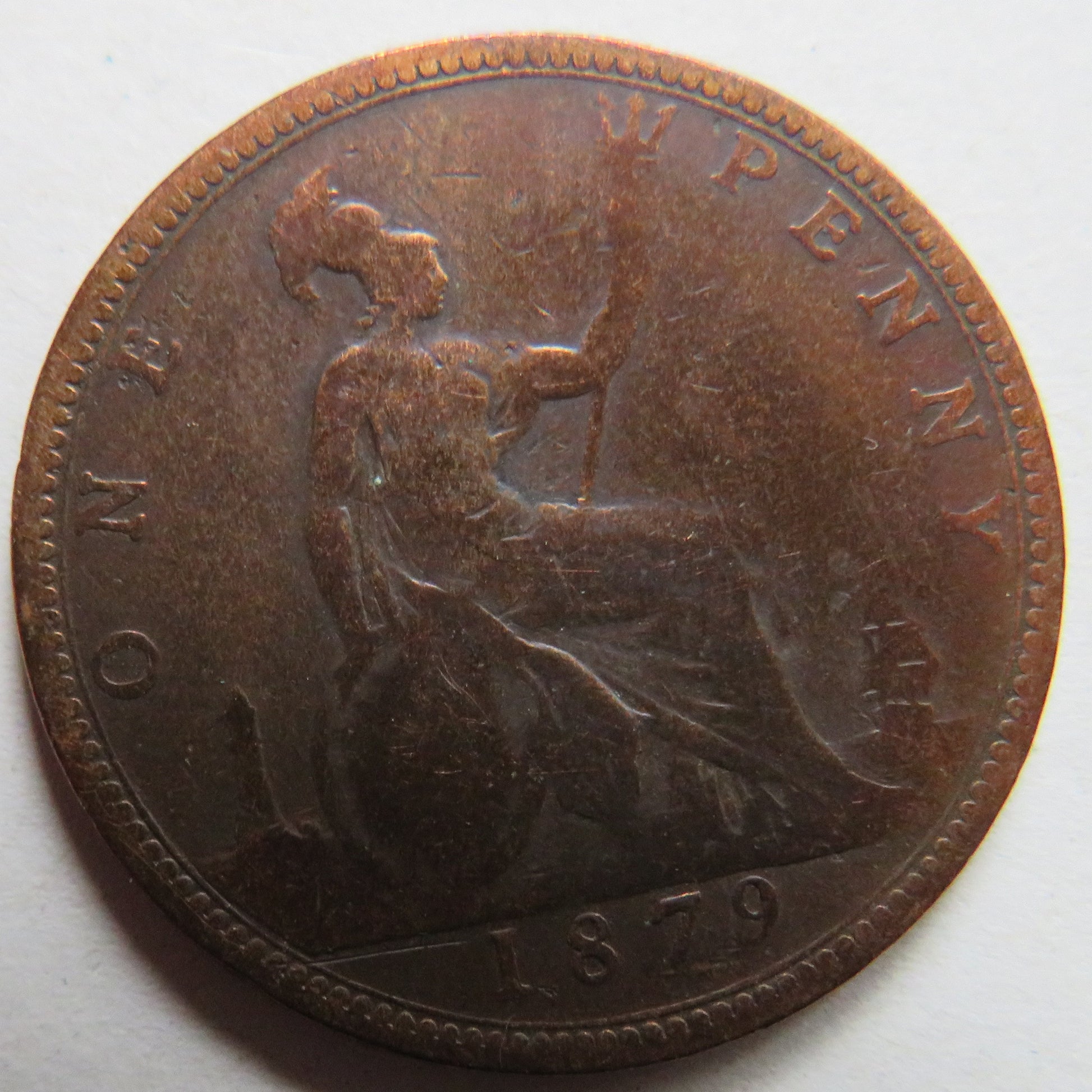 For Sale - 1879 Queen Victoria Bun Head One Penny Coin - Great Britain