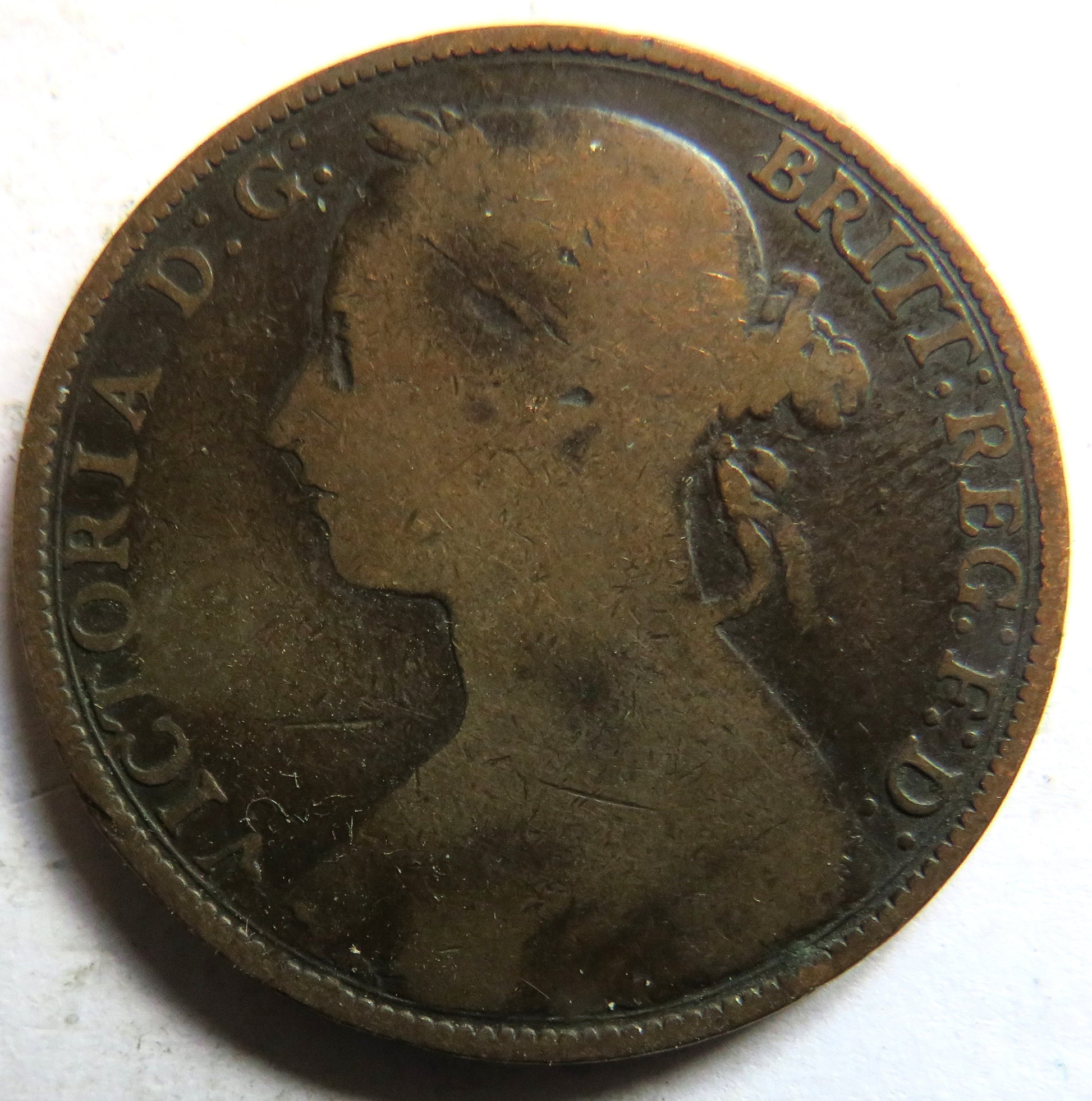 For Sale - 1882-H Queen Victoria Bun Head One Penny Coin - Great Britain