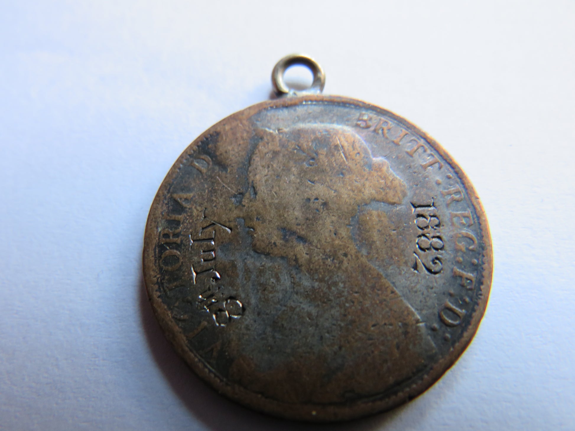 1882 Queen Victoria Engraved Halfpenny Coin Pendant "1882 8th July"