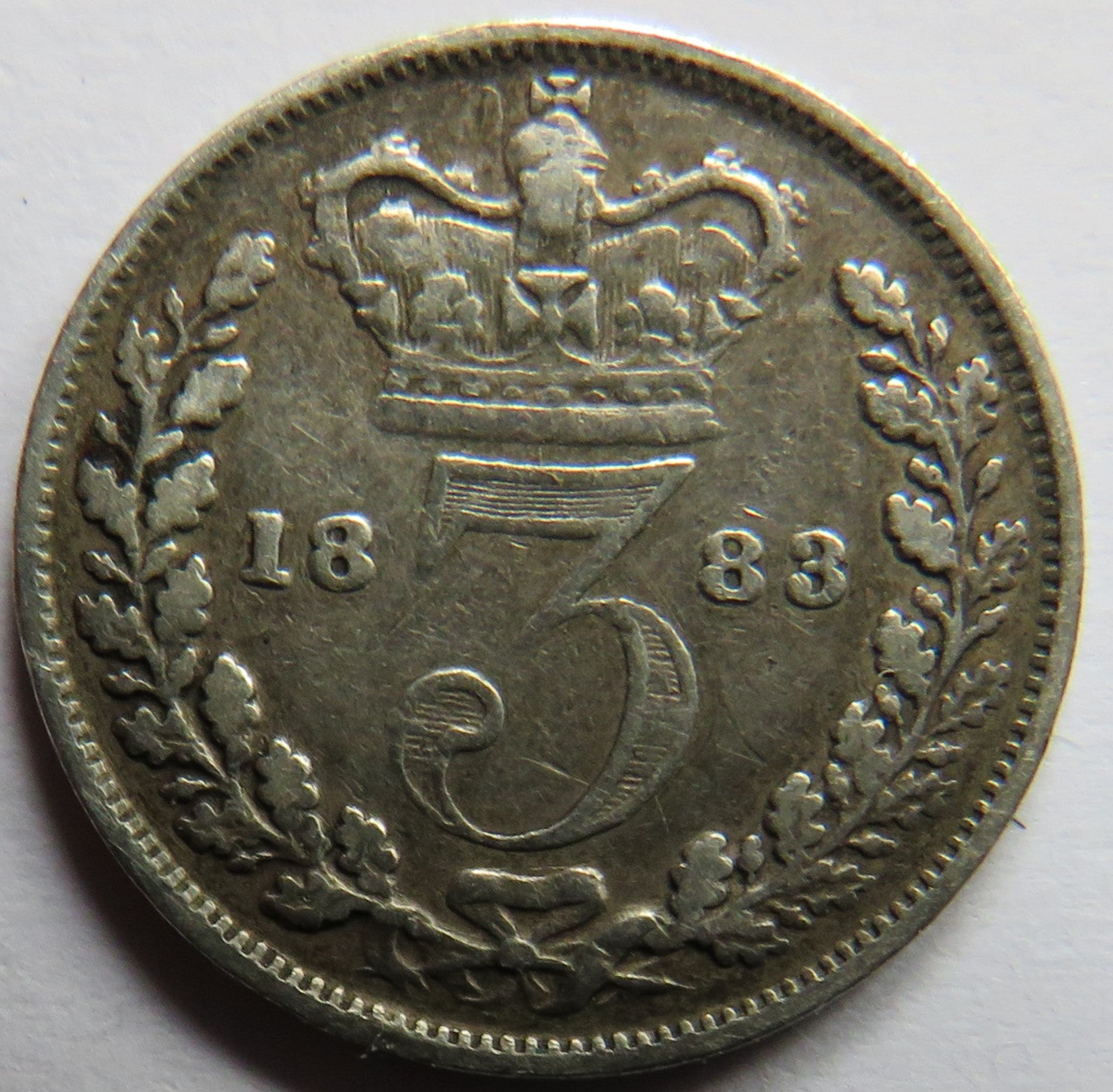 For Sale - 1883 Queen Victoria Young Head Silver Threepence Coin - Great Britain