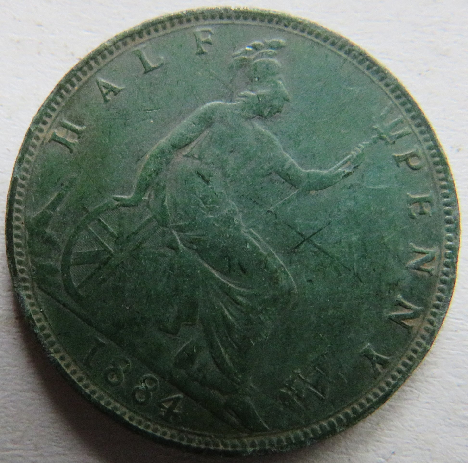 For Sale - 1884 Queen Victoria Bun Head Halfpenny Coin - Great Britain