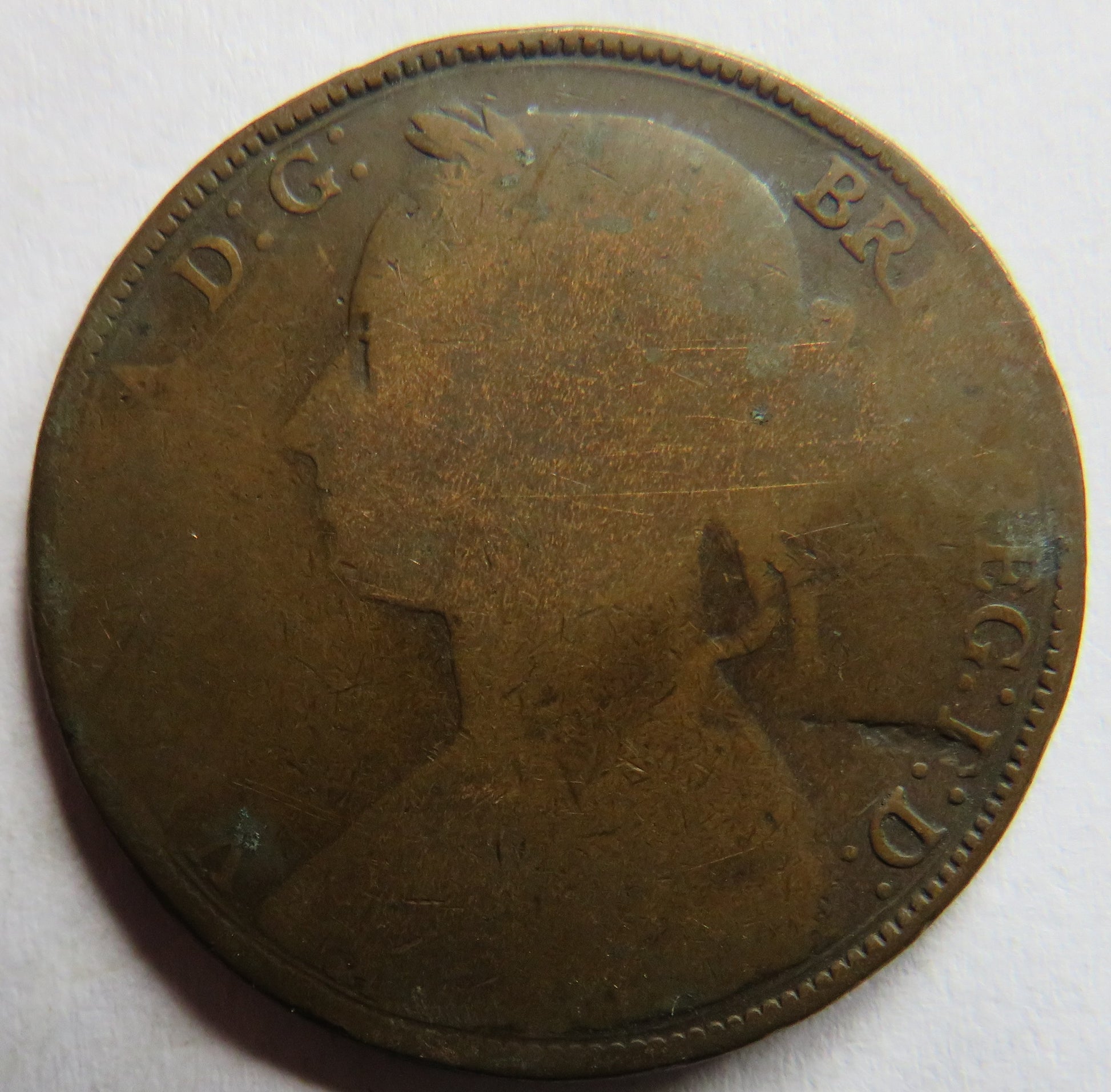 For Sale - 1885 Queen Victoria Bun Head One Penny Coin - Great Britain