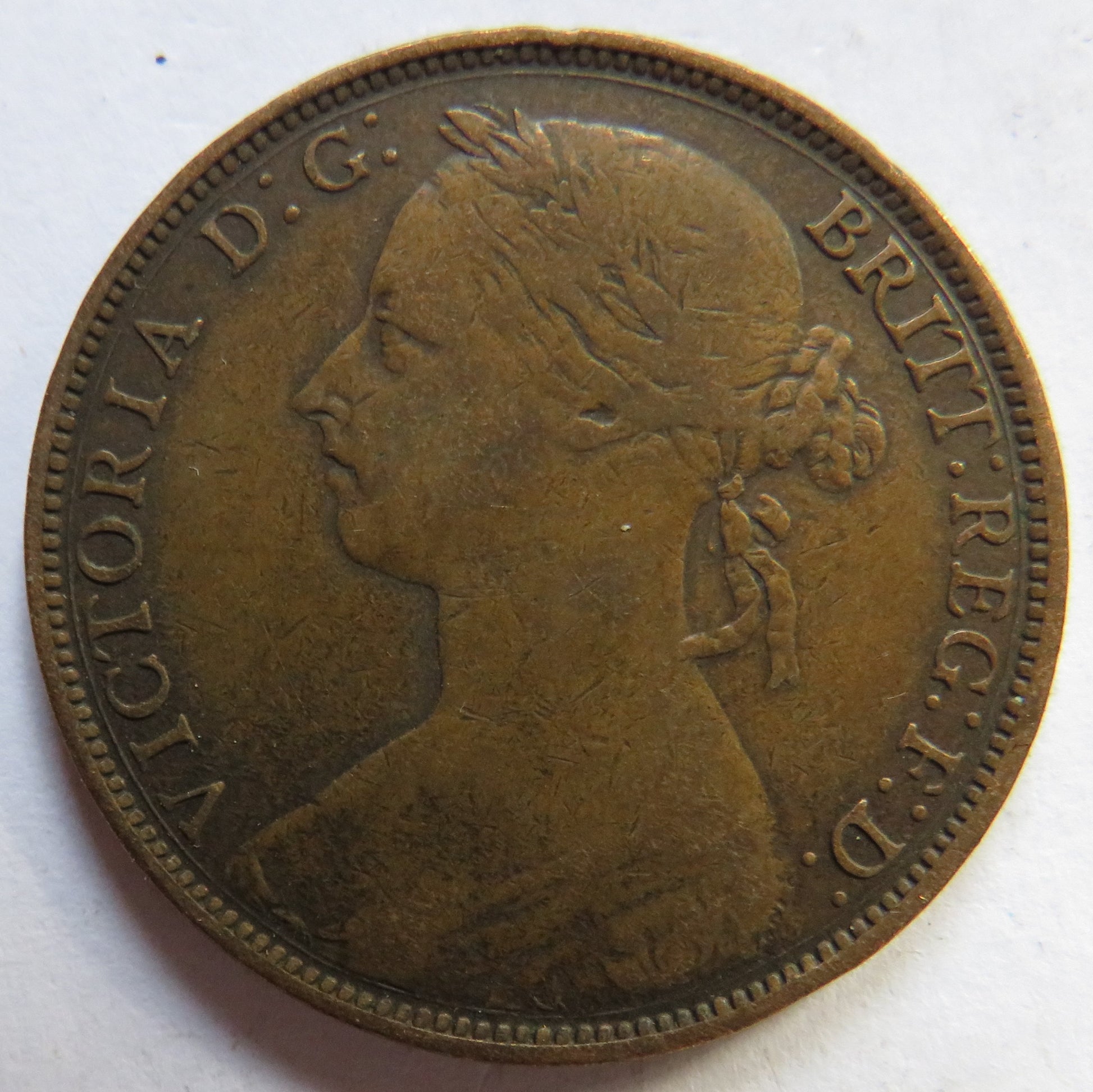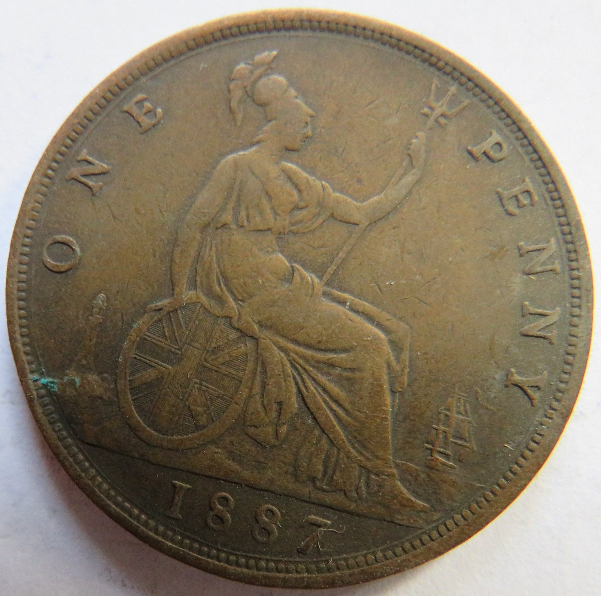 For Sale - 1887 Queen Victoria Bun Head One Penny Coin - Great Britain