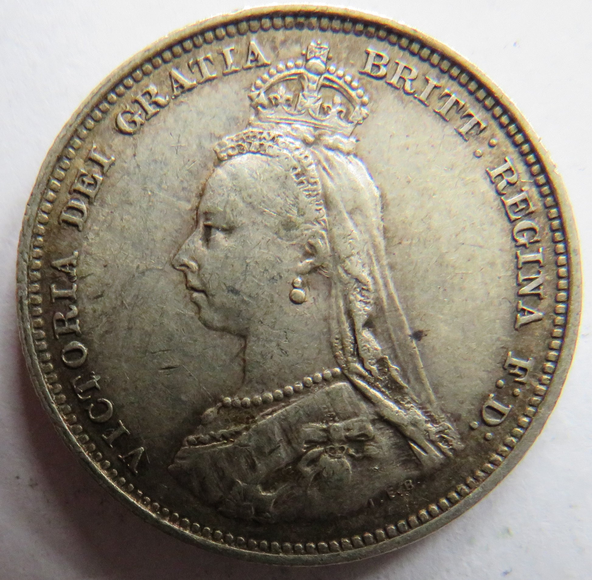 For Sale - 1887 Queen Victoria Jubilee Head Silver Shilling Coin - Great Britain