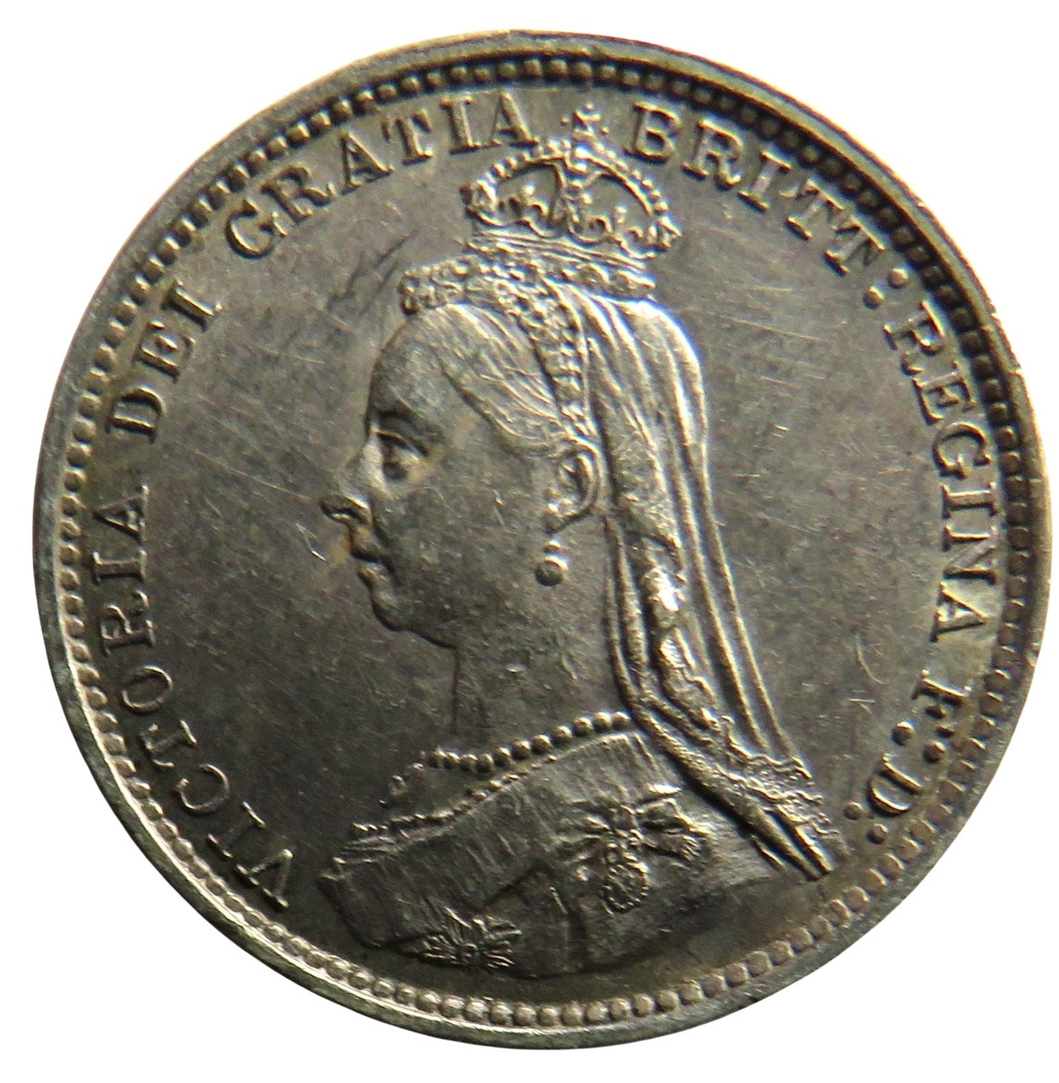 For Sale - 1887 Queen Victoria Jubilee Head Silver Threepence Coin - Great Britain