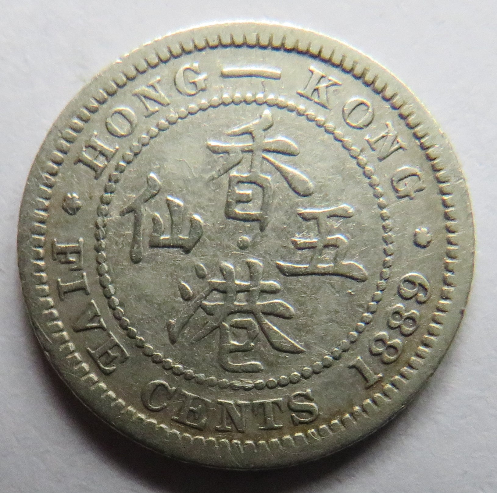 For Sale - 1889 Queen Victoria Hong Kong Silver 5 Cents Coin