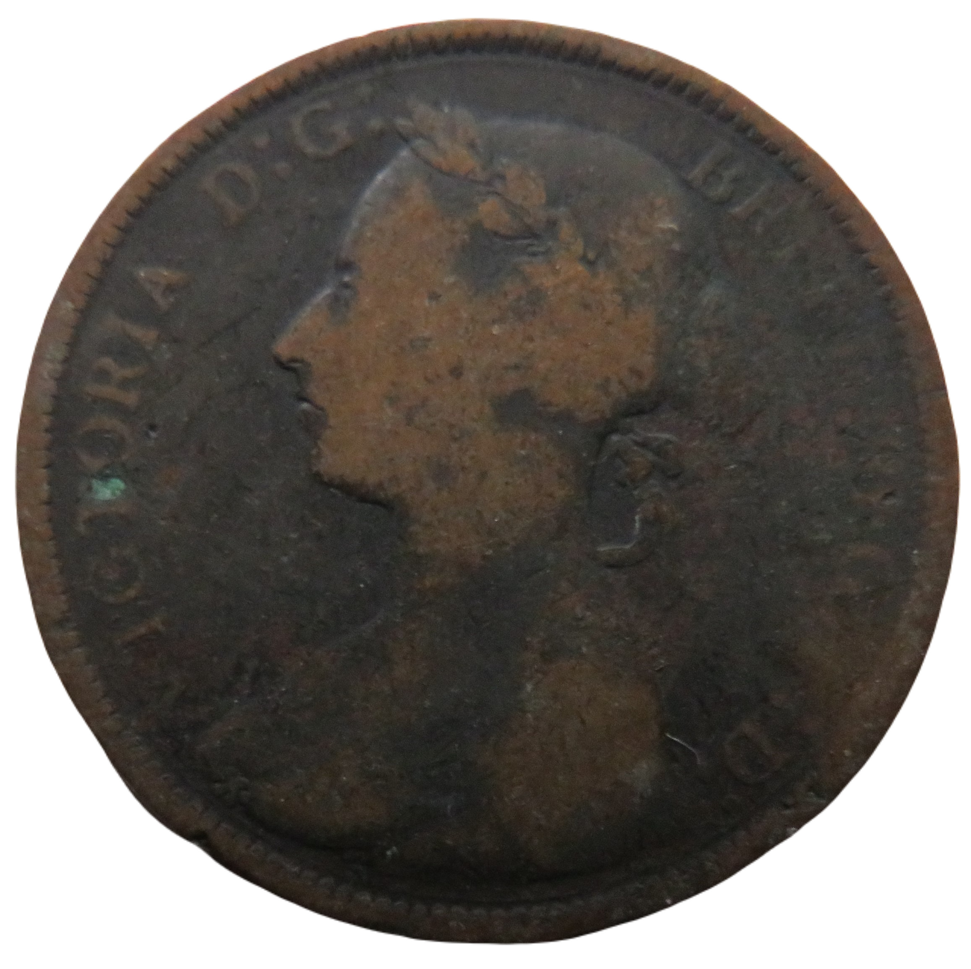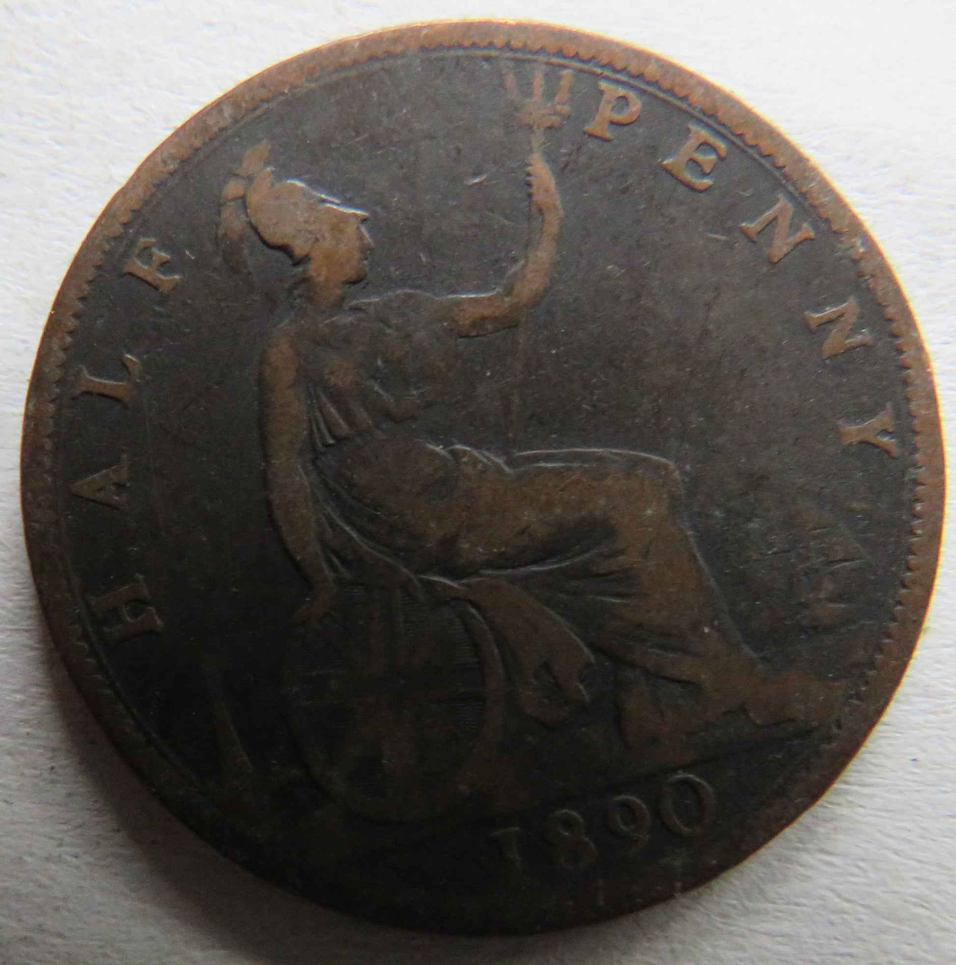 For Sale - 1890 Queen Victoria Bun Head Halfpenny Coin - Great Britain