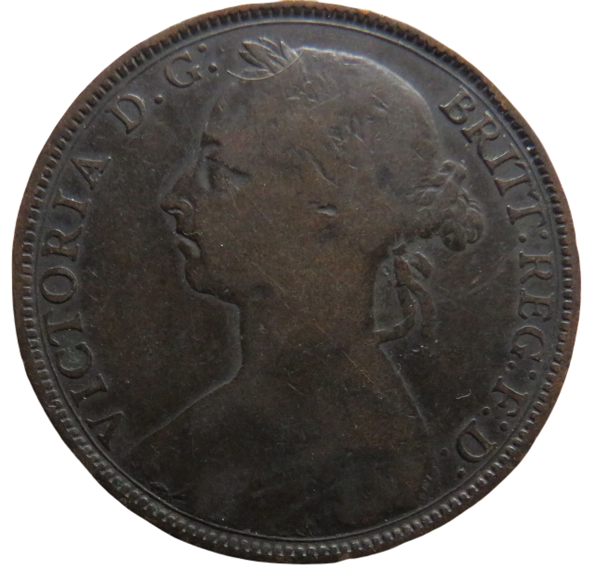 For Sale - 1890 Queen Victoria Bun Head One Penny Coin - Great Britain