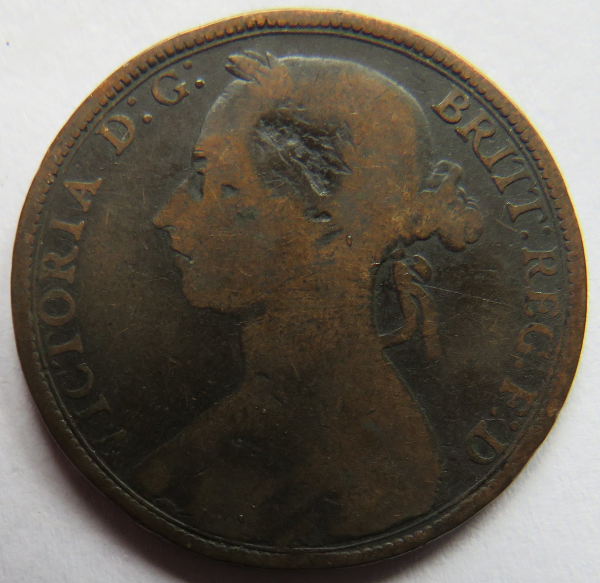 For Sale - 1891 Queen Victoria Bun Head One Penny Coin - Great Britain
