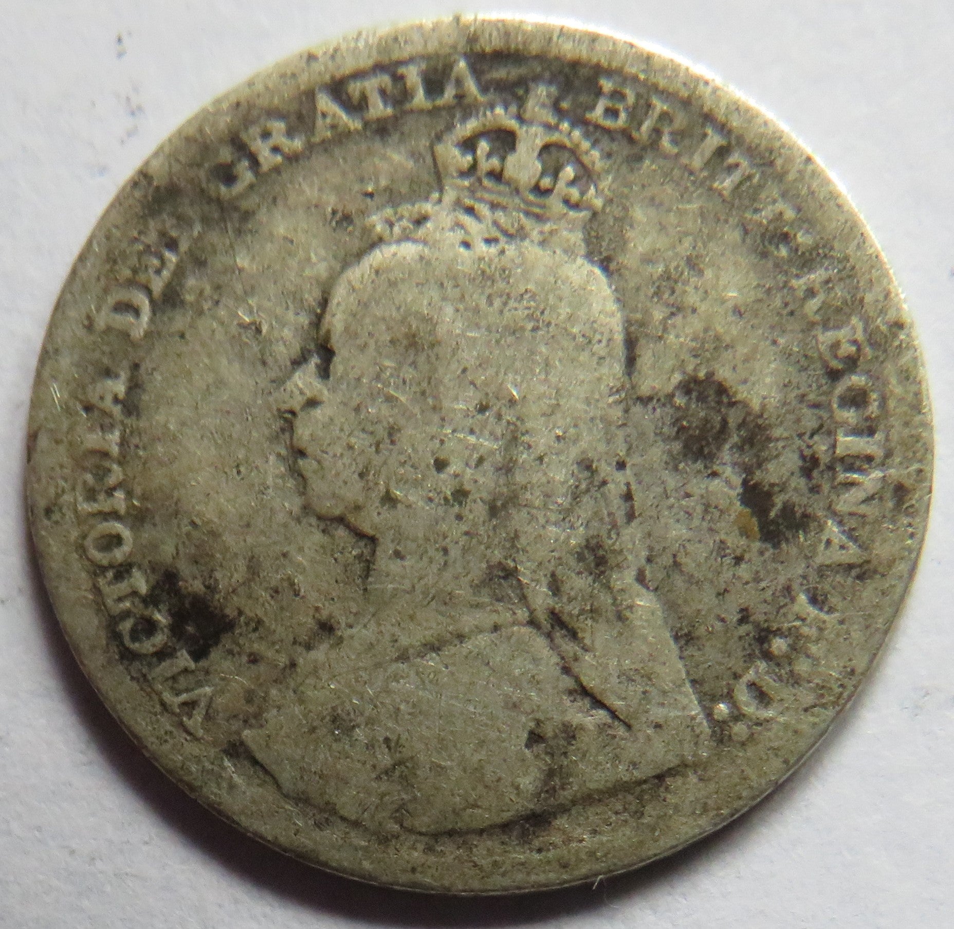 For Sale - 1892 Queen Victoria Jubilee Head Silver Threepence Coin - Great Britain