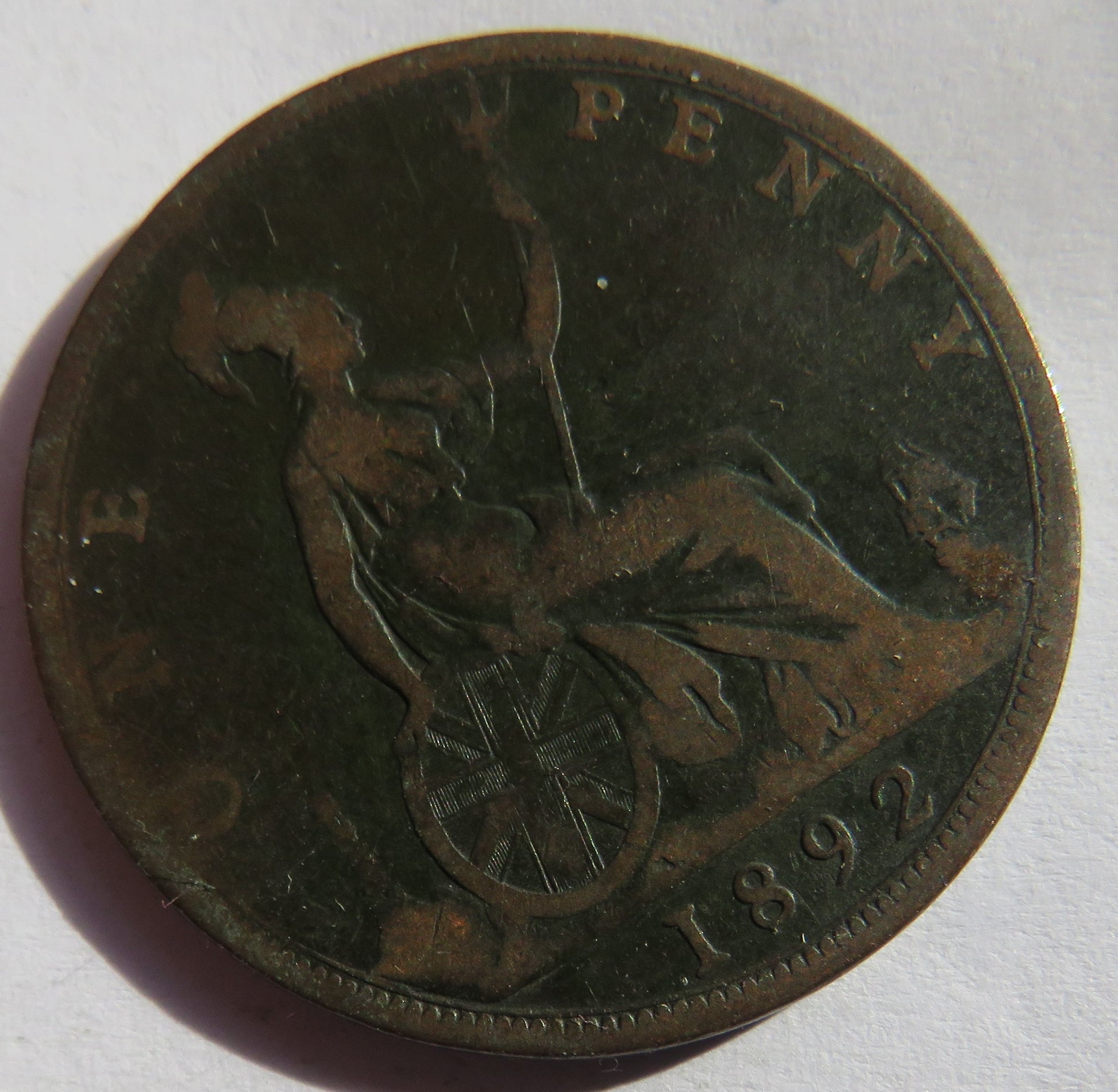 For Sale - 1892 Queen Victoria One Penny Coin - Great Britain