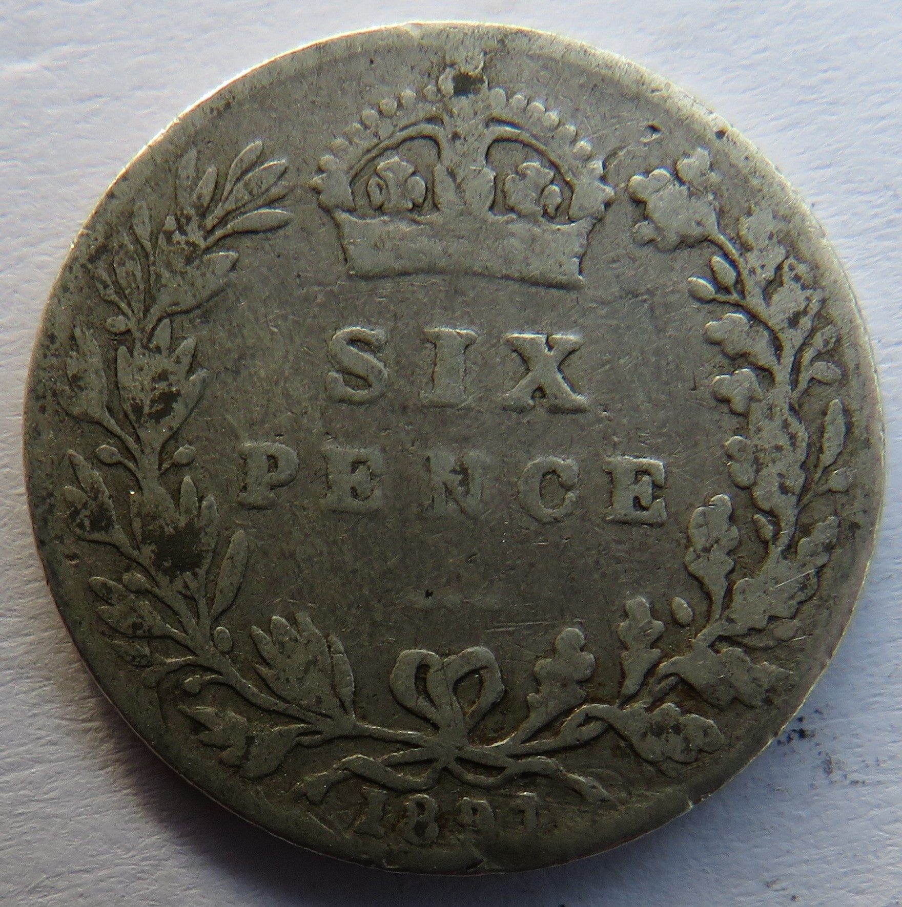 For Sale - 1897 Queen Victoria Silver Sixpence Coin - Great Britain