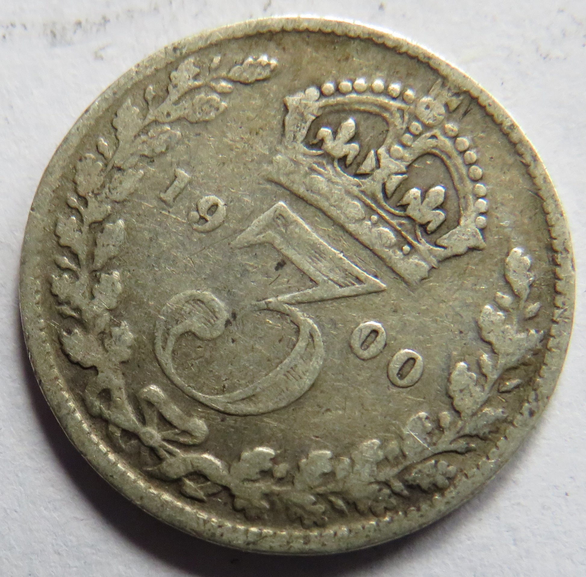 For Sale - 1900 Queen Victoria Silver Threepence Coin - Great Britain