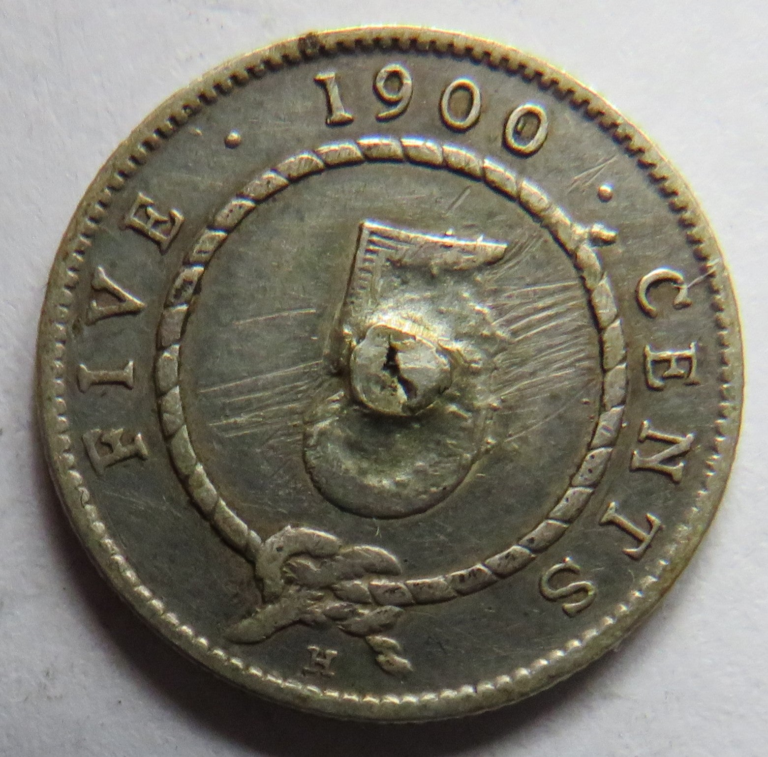 1900 Sarawak Silver 5 Cents Coin (Damaged) Rare