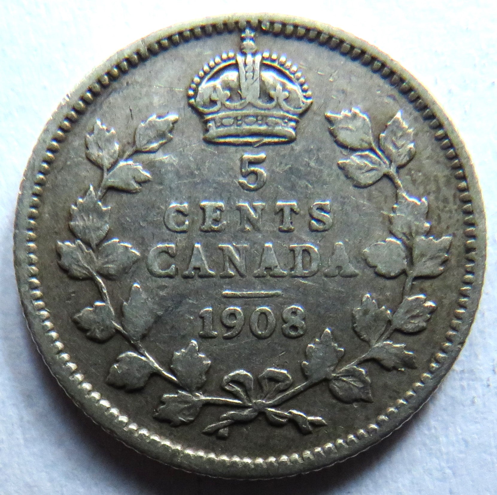 For Sale - 1908 King Edward VII Canada Silver 5 Cents Coin