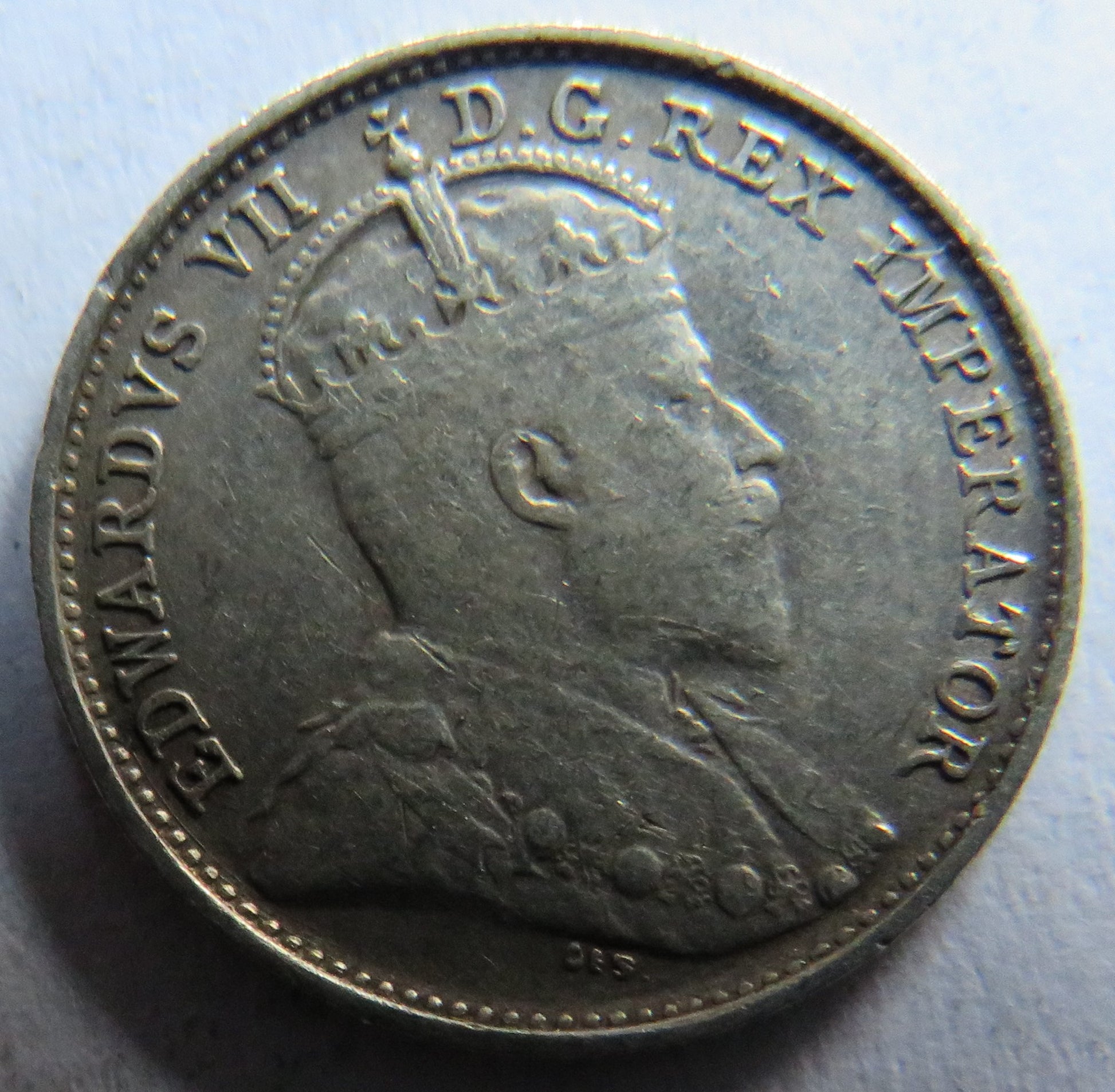1908 King Edward VII Canada Silver 5 Cents Coin