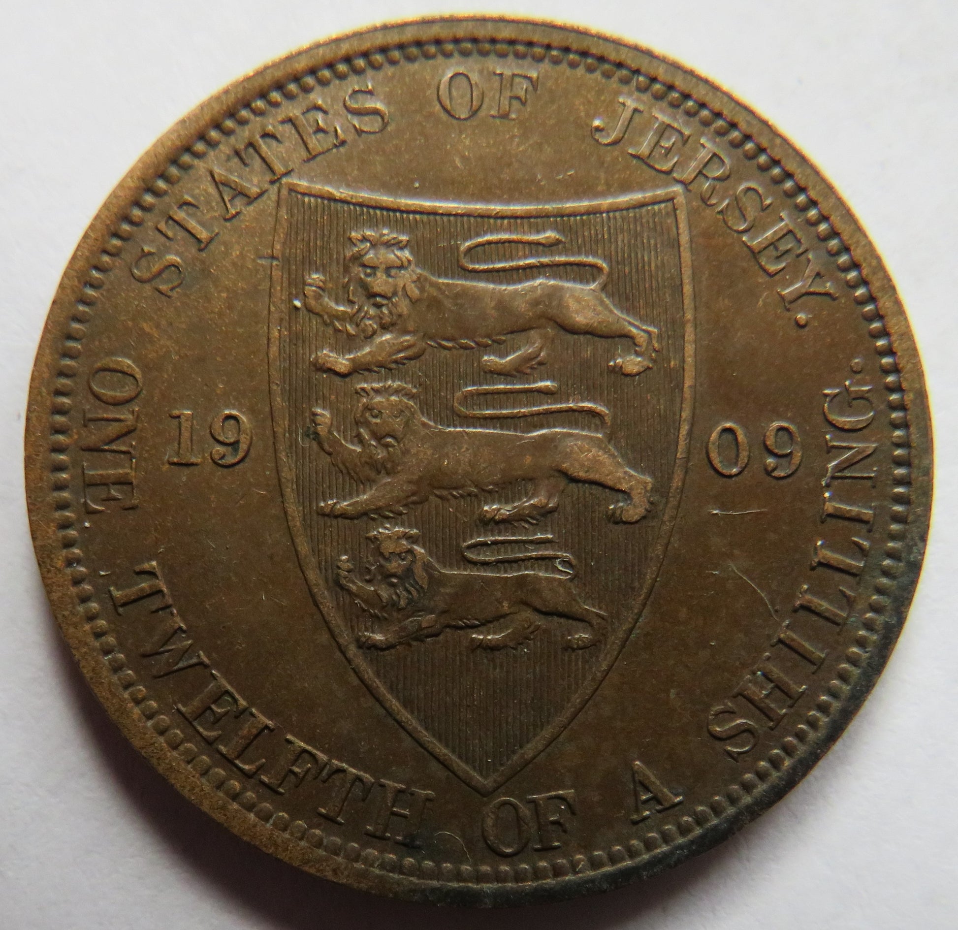 1909 King Edward VII Jersey 1/12th of a Shilling Coin