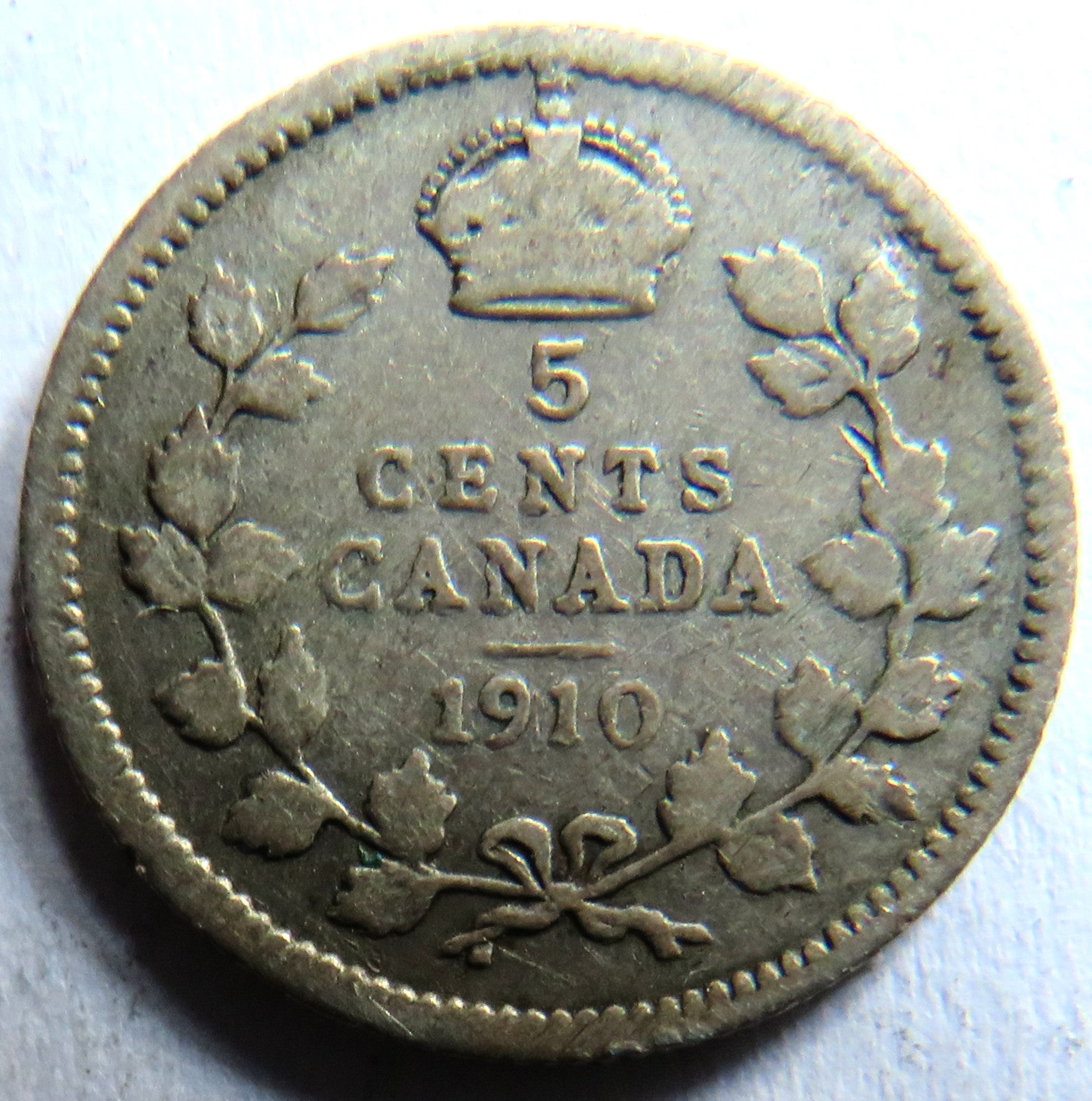 1910 King Edward VII Canada Silver 5 Cents Coin
