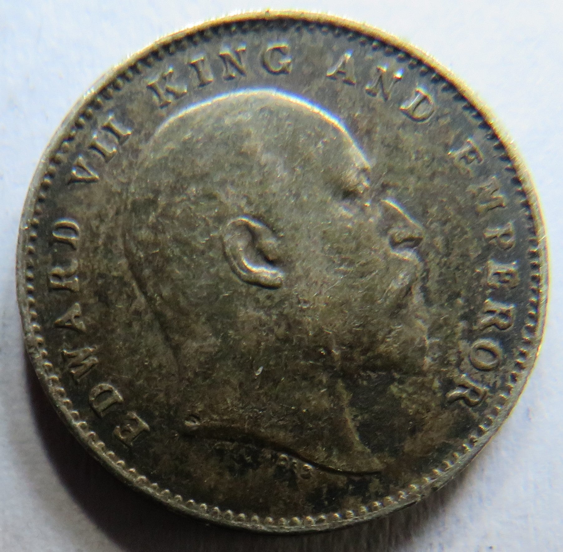For Sale - 1910 King Edward VII India Silver 2 Annas Coin