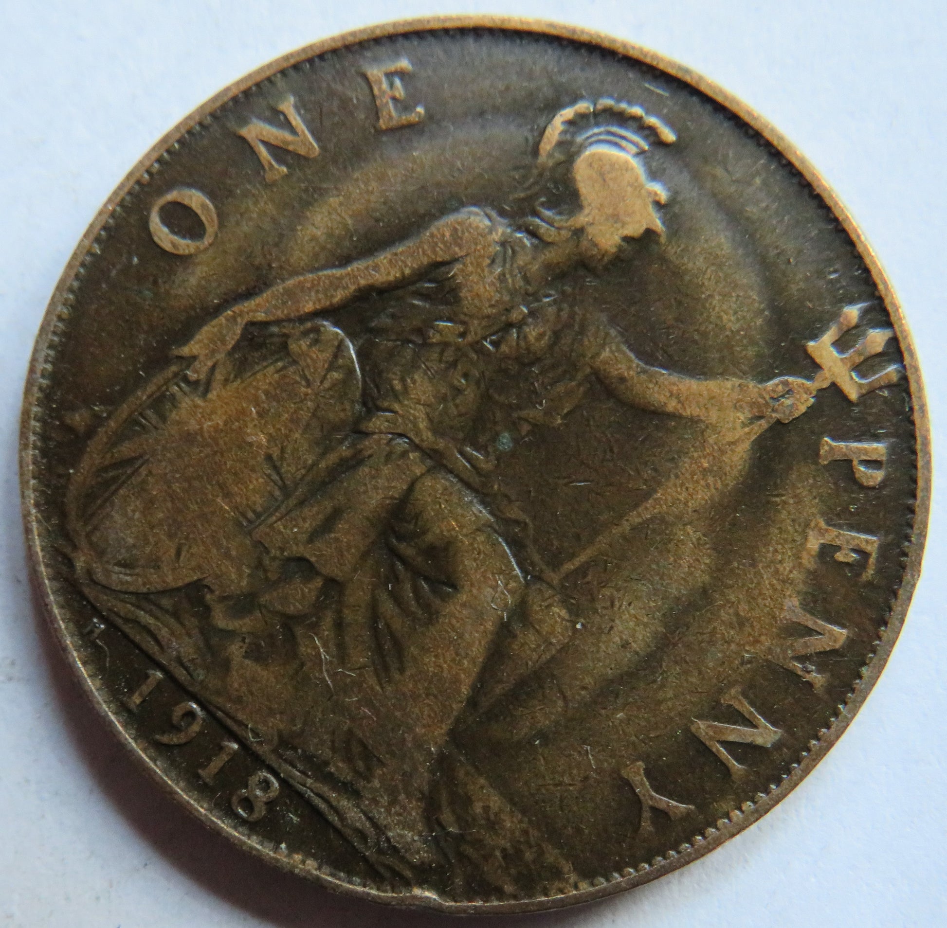 For Sale - 1918-H King George V One Penny Coin - Great Britain